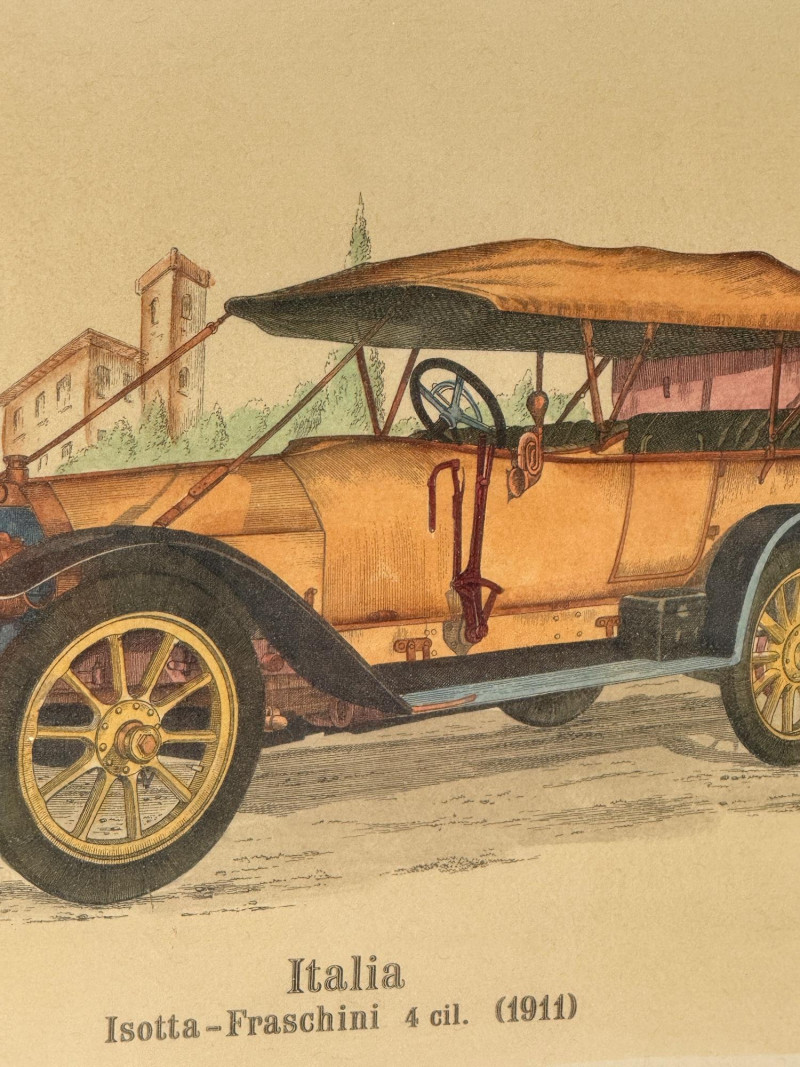Lot # 97 - Vintage Framed Print of 1911 Isotta-Fraschini Automobile