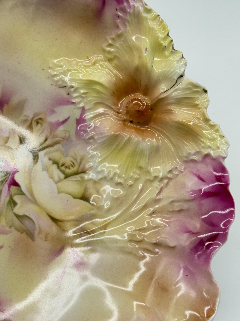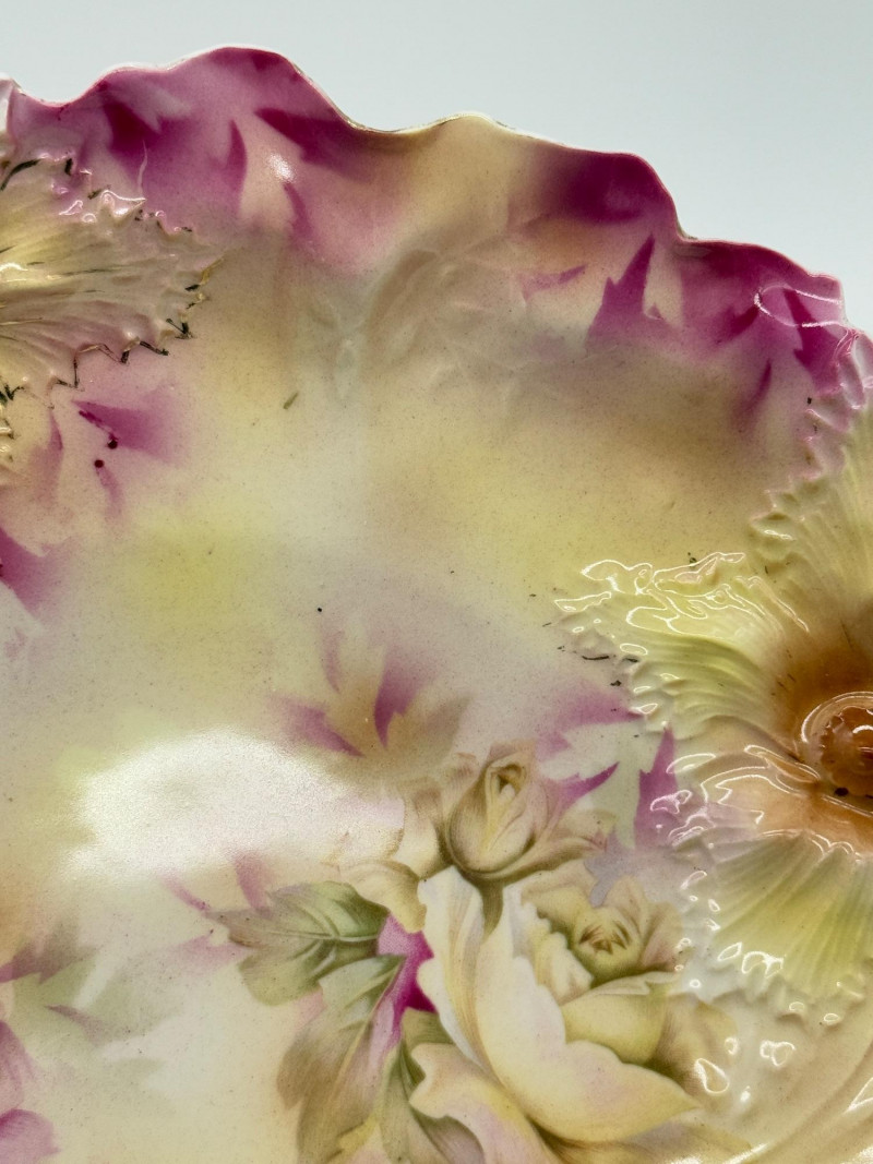 Antique RS Prussia Embossed Rose Large Serving Bowl