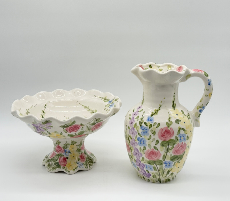 English Garden Ceramic Bowl & Pitcher by Don Swanson