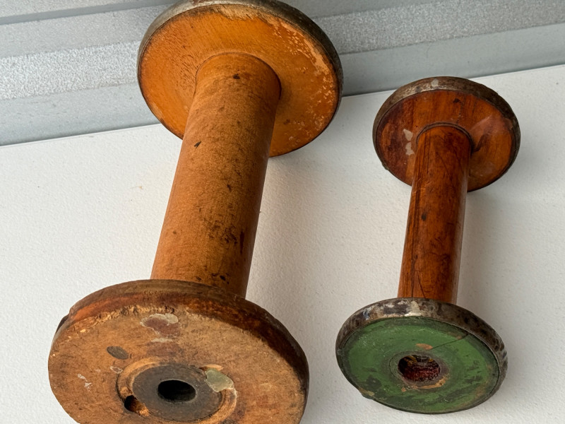 Lot # 181 - Vintage Industrial Textile Wood Spools
