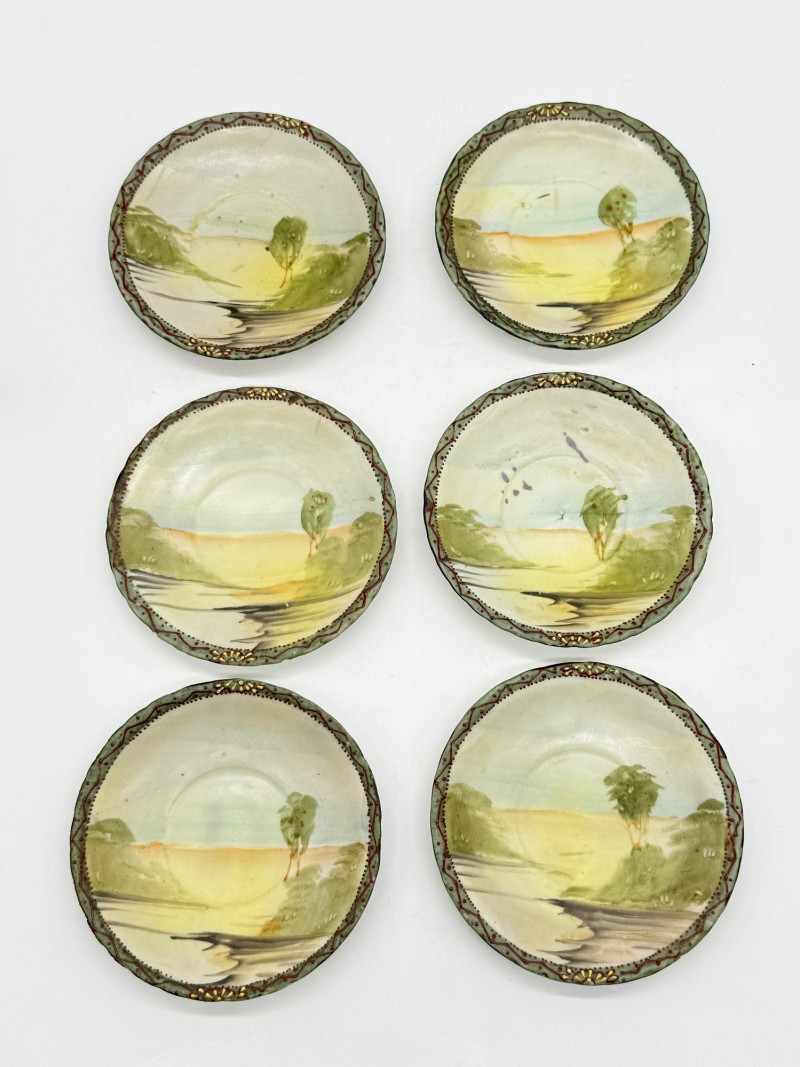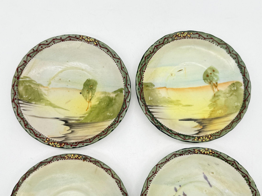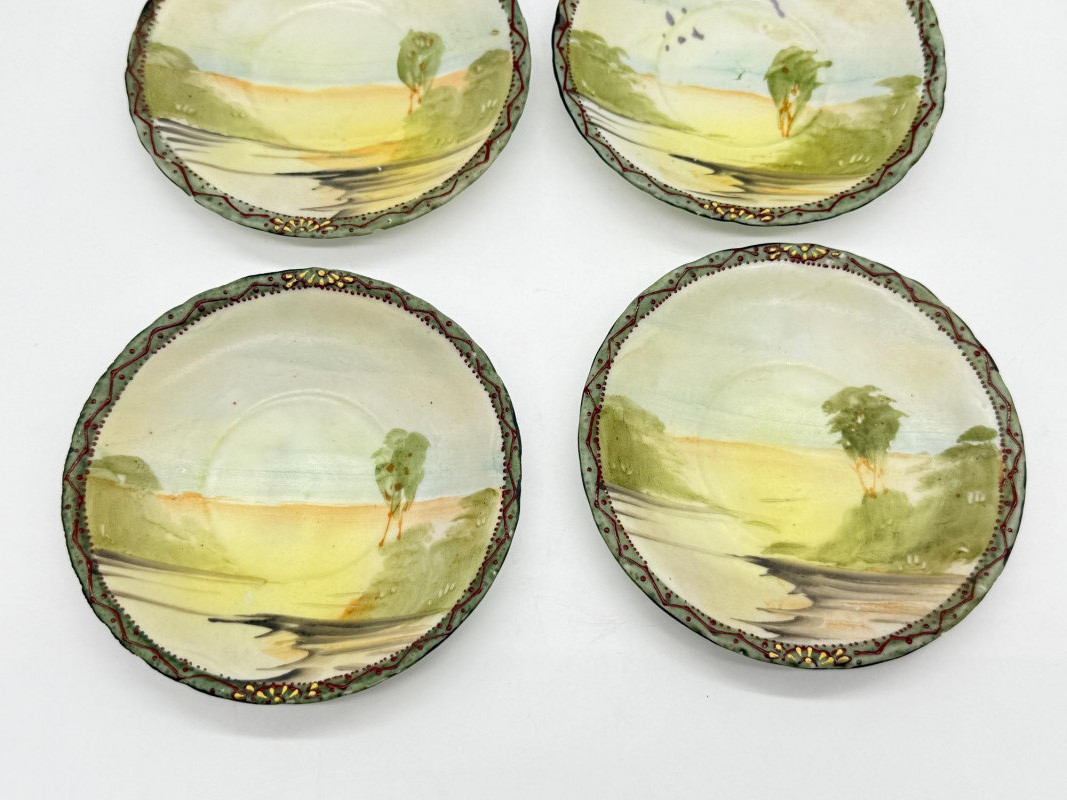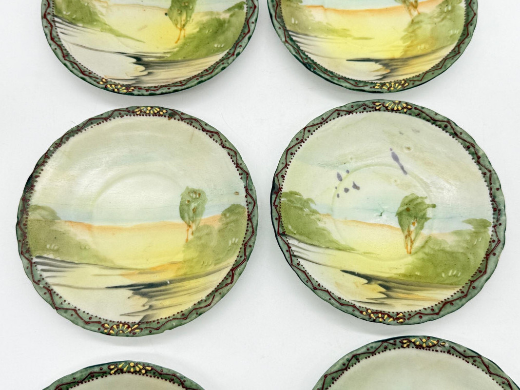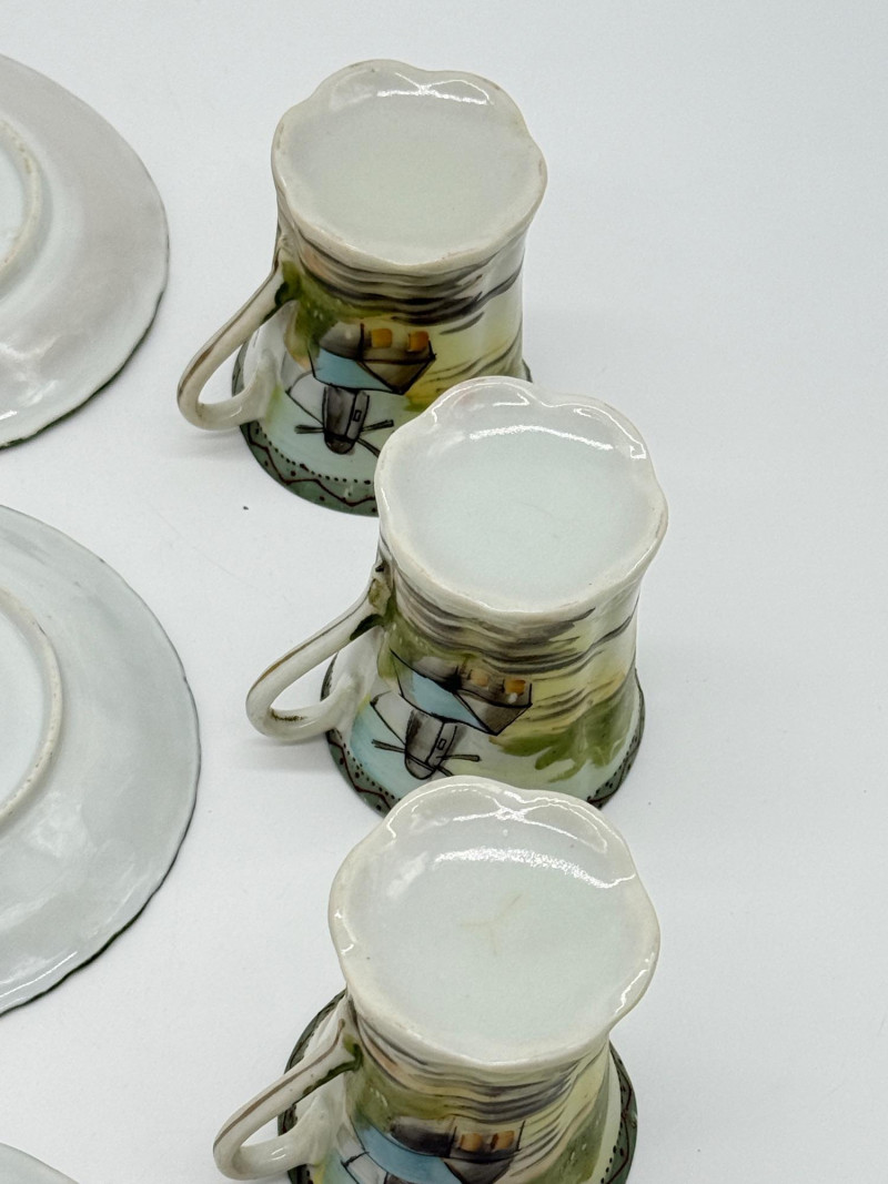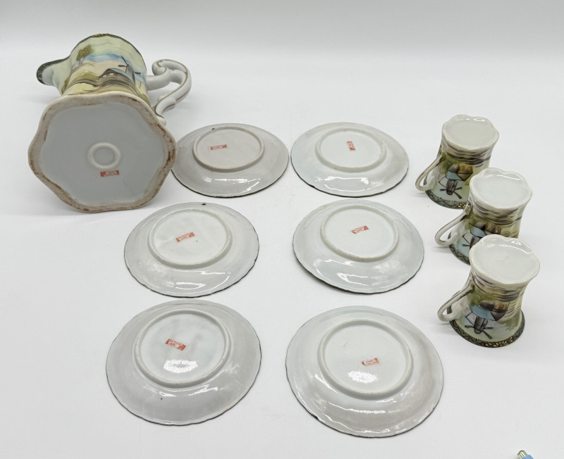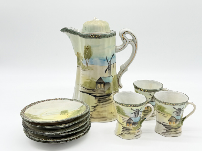Antique Hand-Painted Nippon Porcelain Chocolate Pot, Cups & Plates