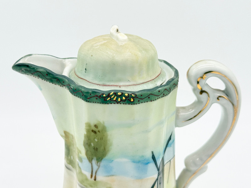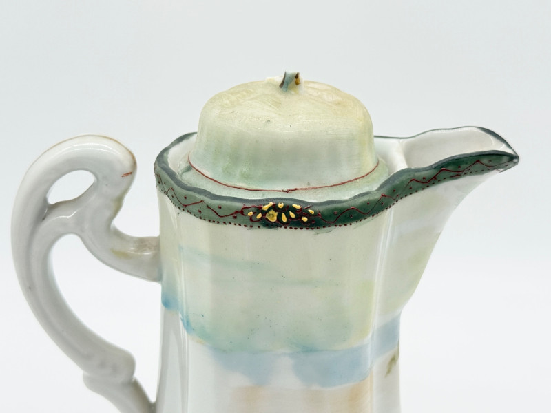 Lot # 13 - Antique Hand-Painted Nippon Porcelain Chocolate Pot, Cups & Plates