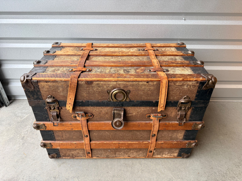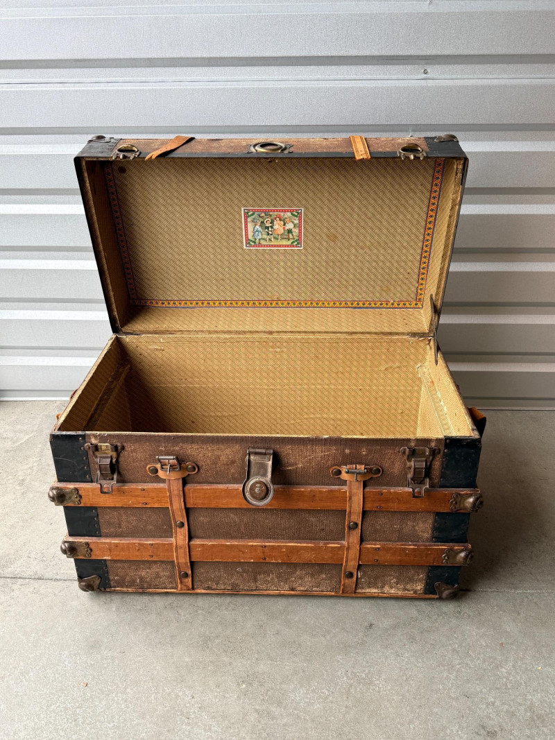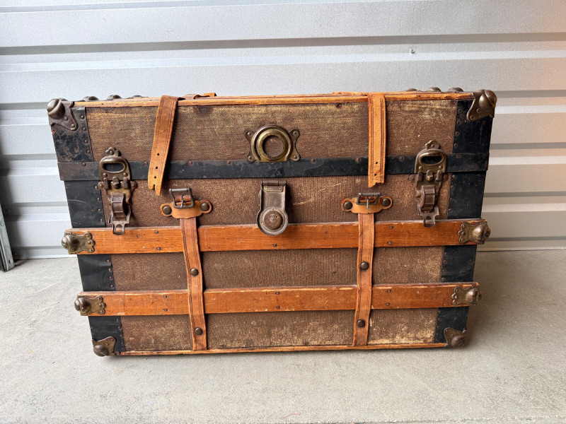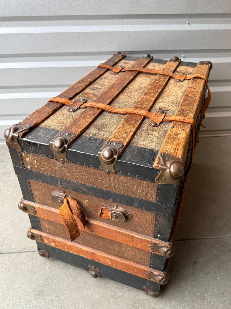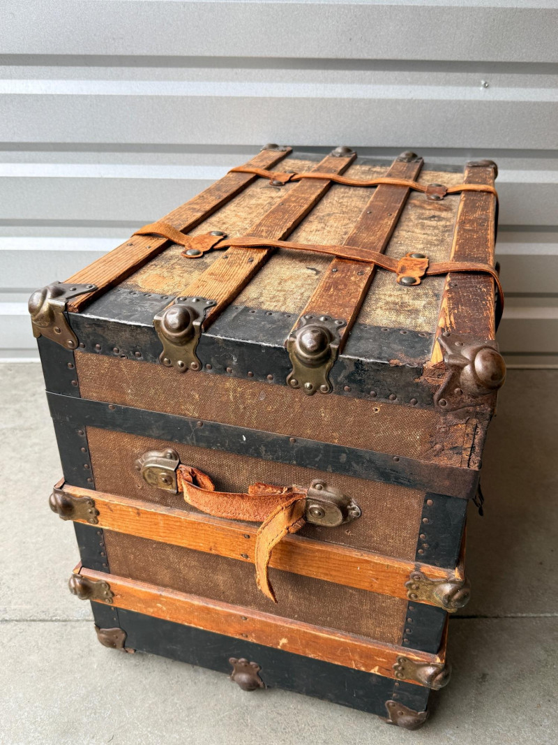 Lot # 53 - Vintage Steamer Trunk w/ Wheels
