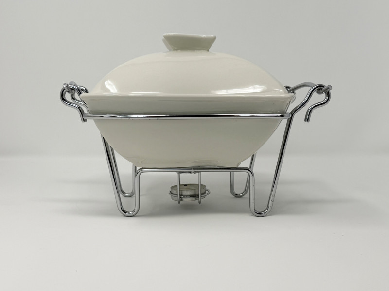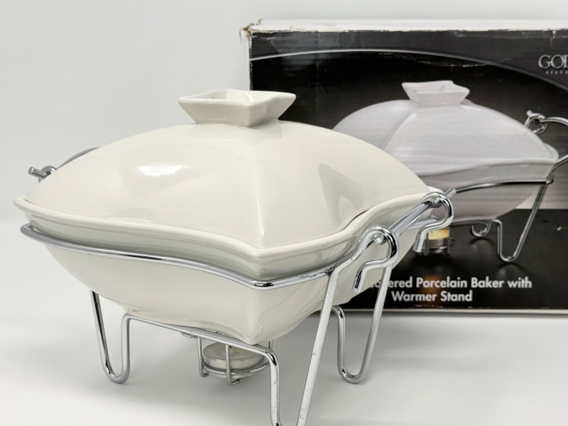 Lot # 178 - Godinger 1 Qt Covered Porcelain Baker w/ Warmer Stand