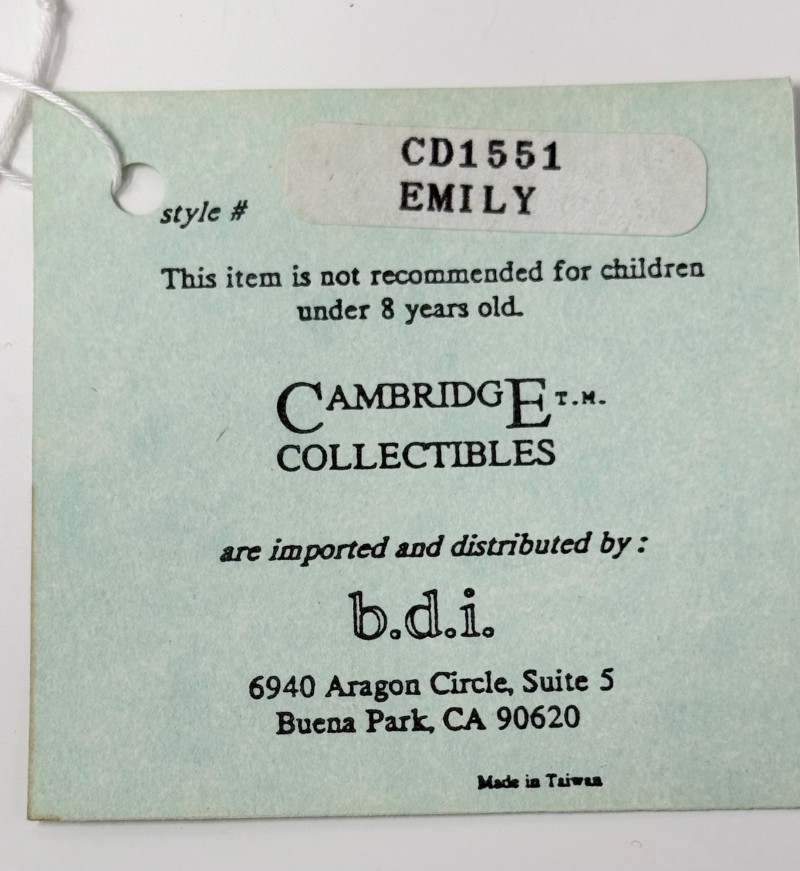 Cambridge Collectibles Porcelain Doll: Emily, Style CD1551