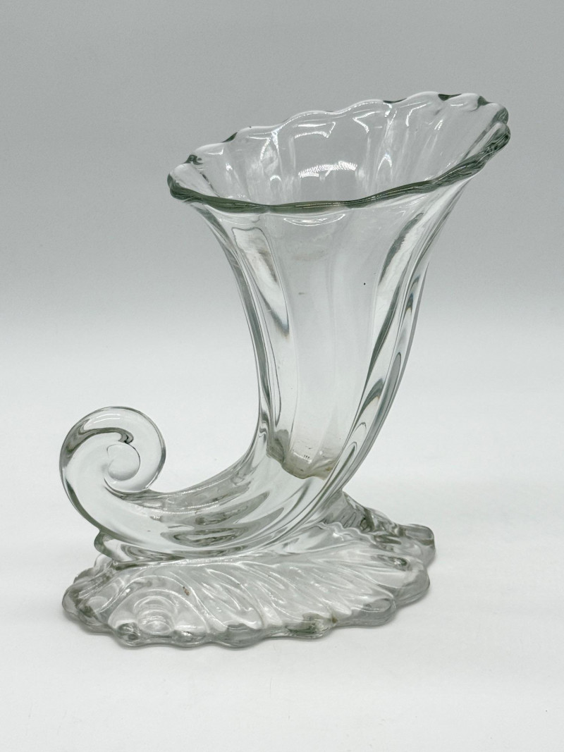 Lot # 143 - Vintage Heisey Warwick Clear Glass Cornucopia Vase
