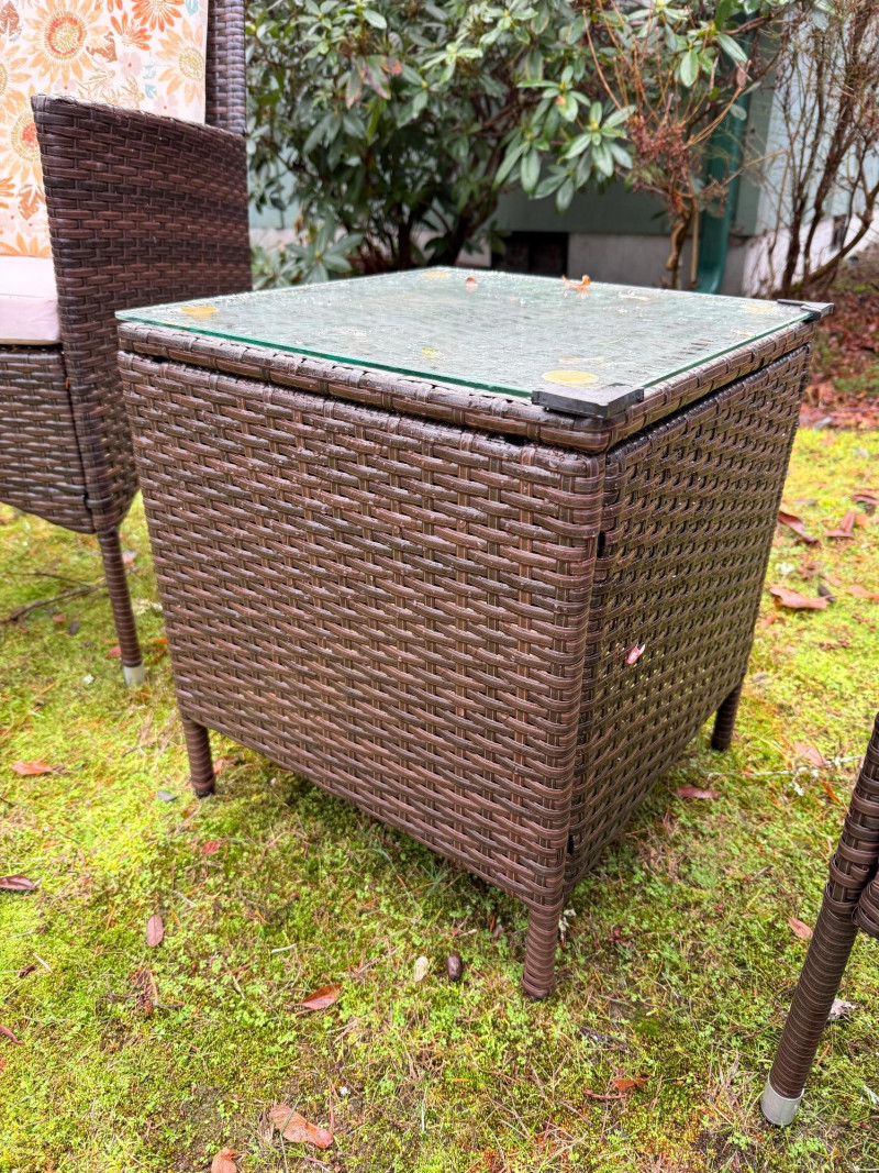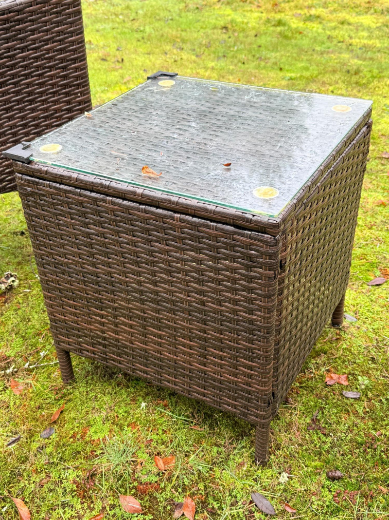 3-Piece Wicker Outdoor Patio Furniture Chair Size Side Table w/ Glass Top