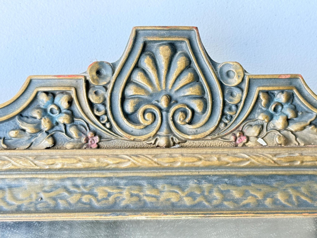 Antique Nurre Wooden Mirror Art Nouveau Decor Ornate Crest