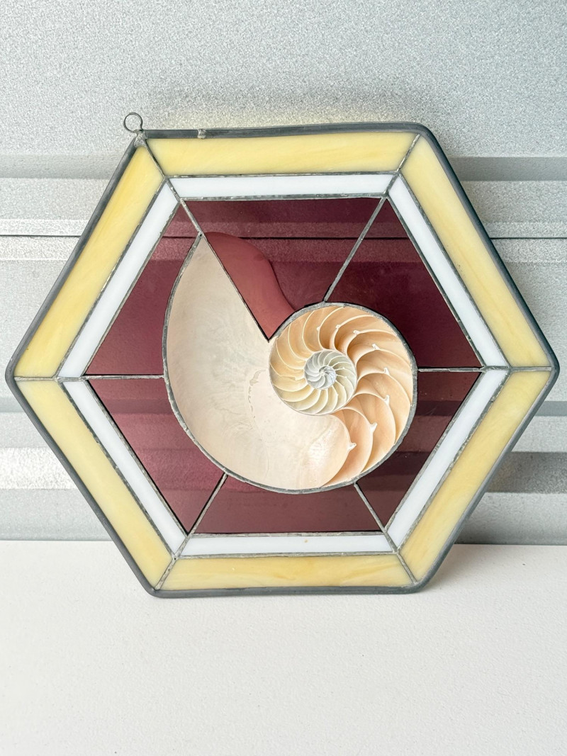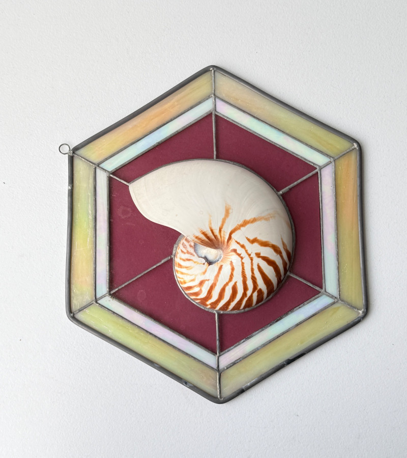Stained Glass Suncatcher w/ Nautilus Shell