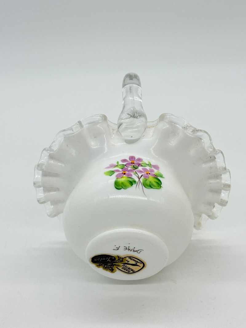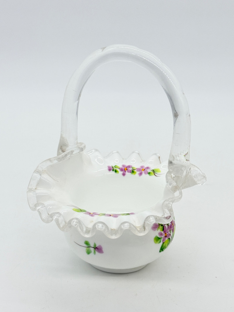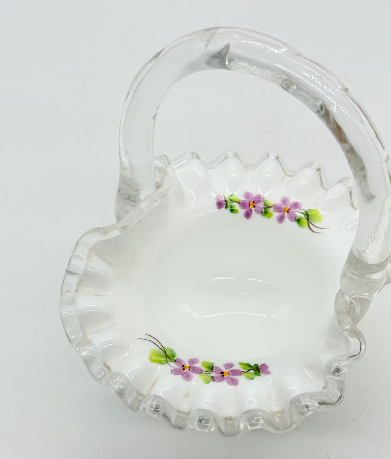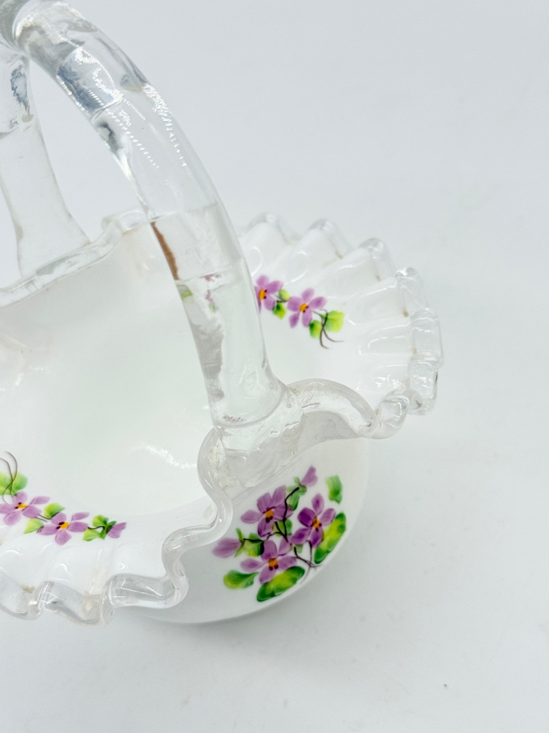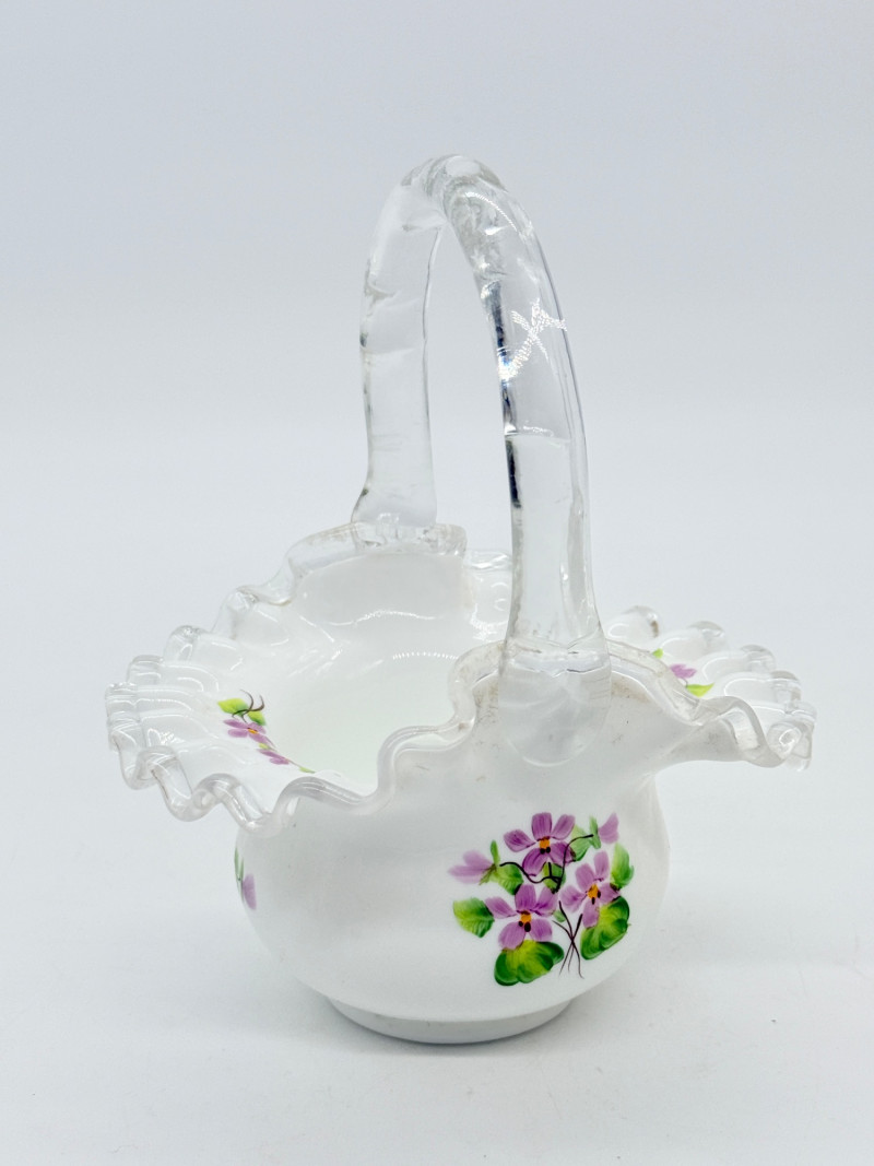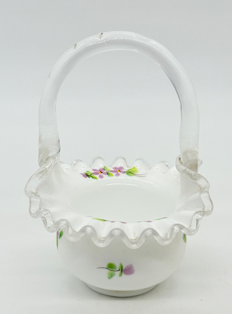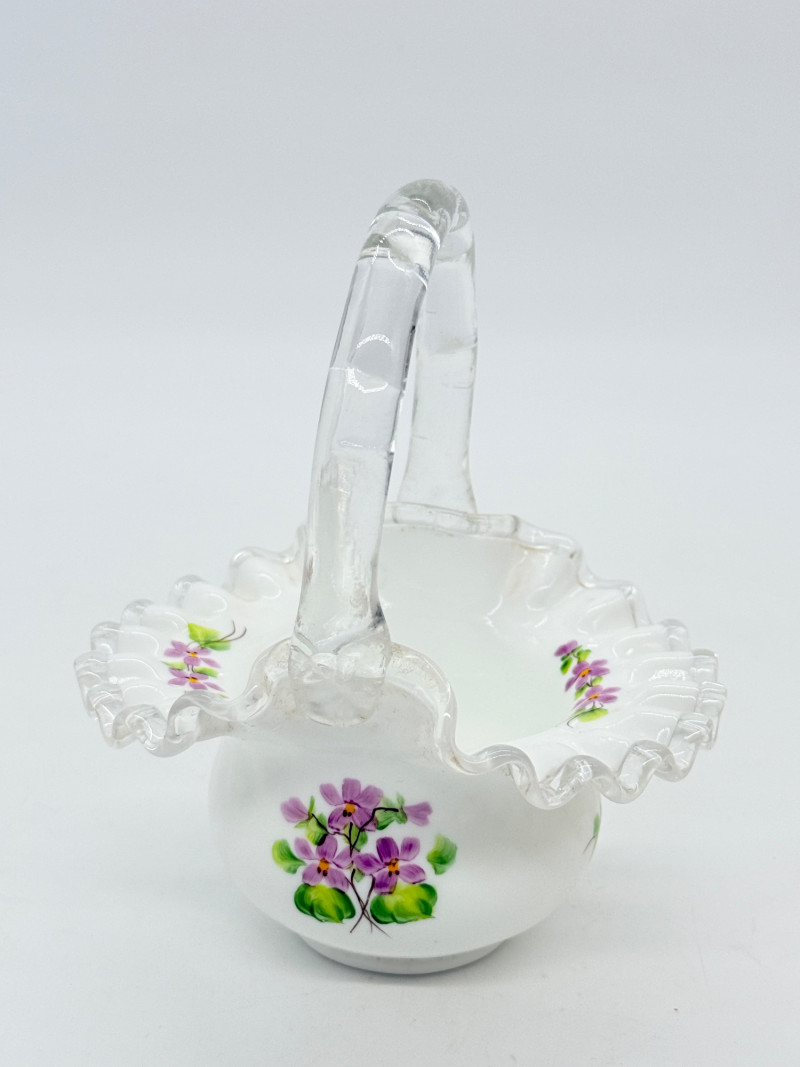 Vintage Fenton "Violets in the Snow" Milk Glass Basket