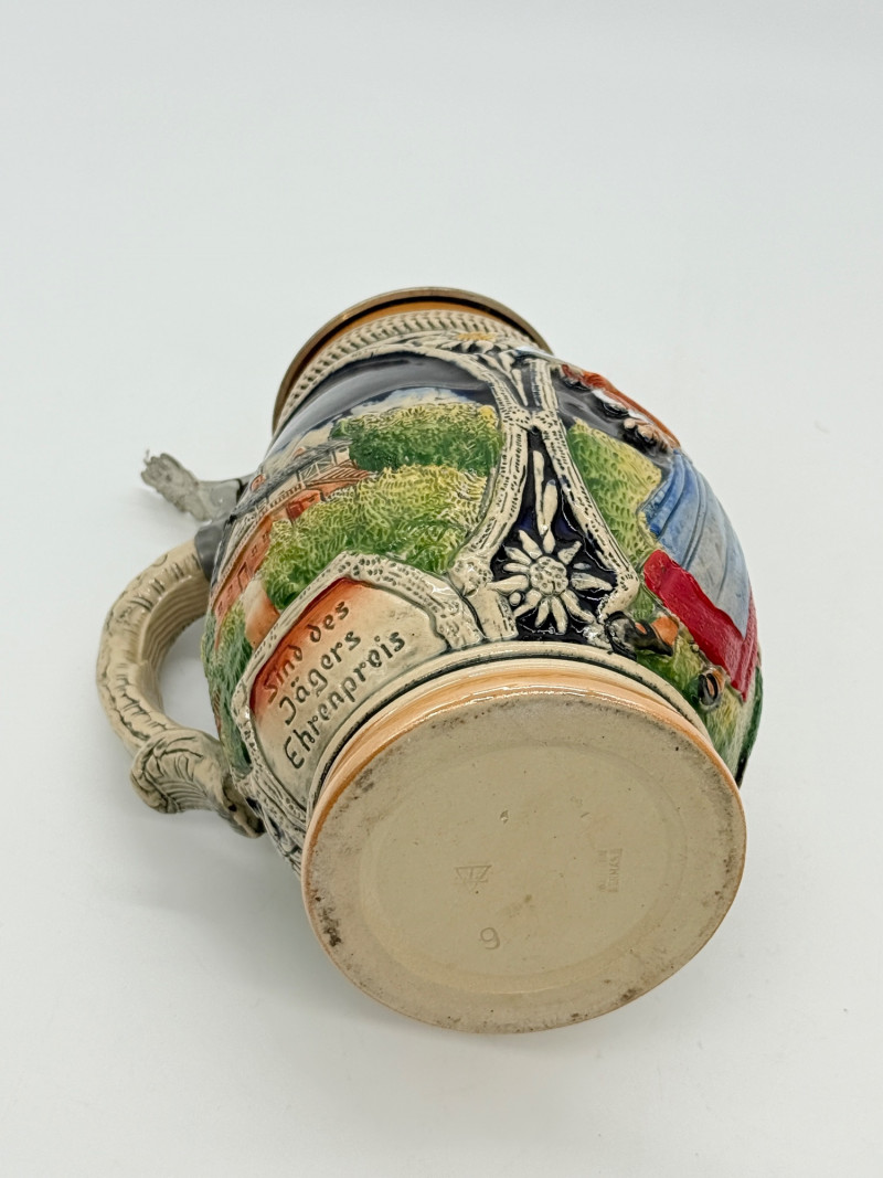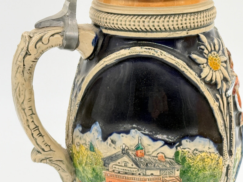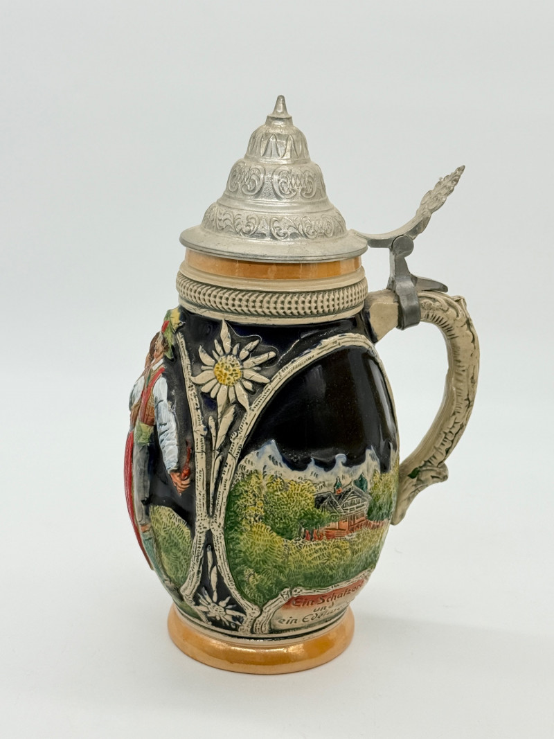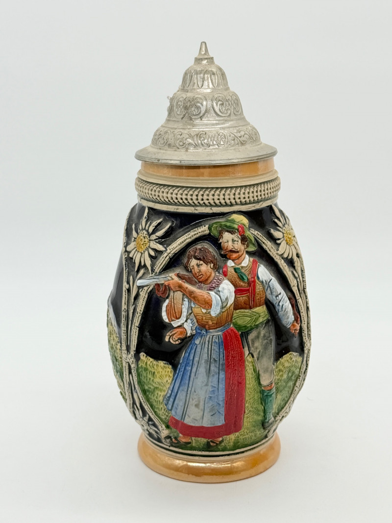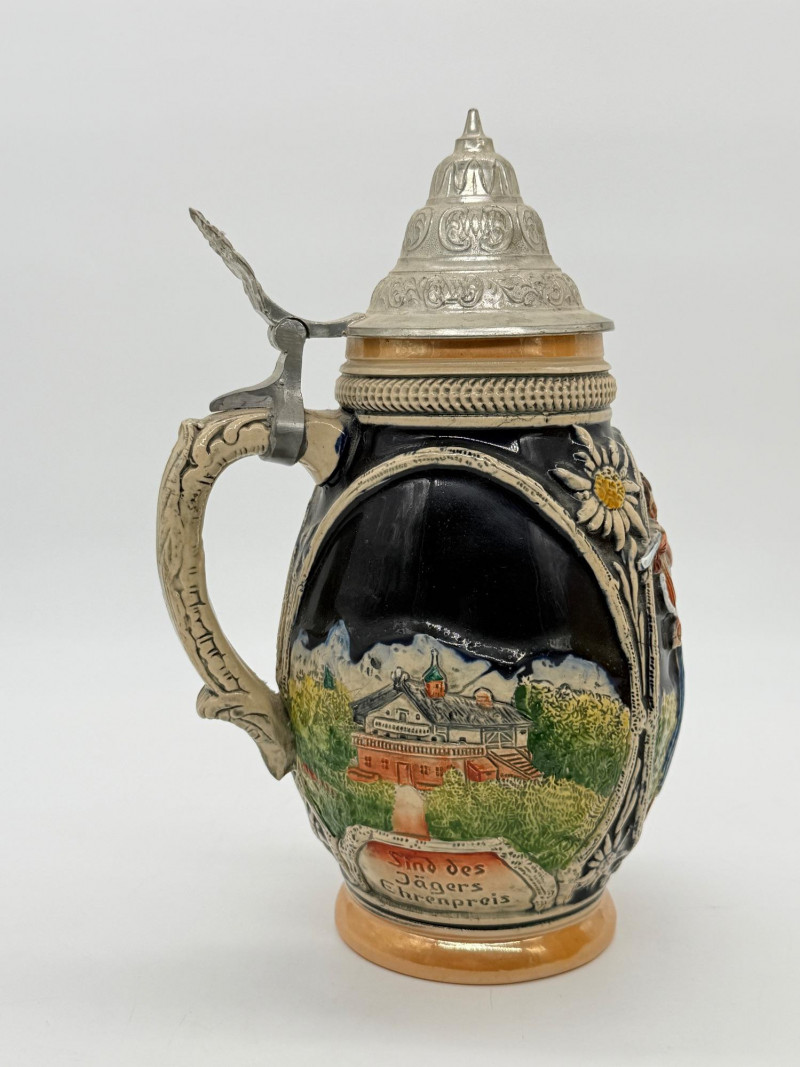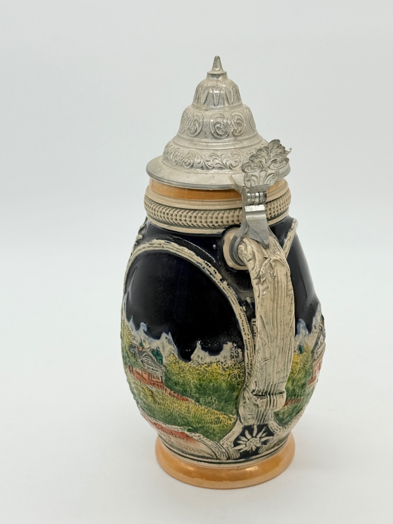 Lot # 98 - Vintage 10" German Beer Stein w/ Pewter Lid
