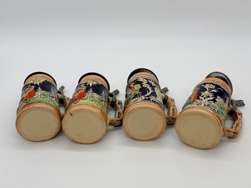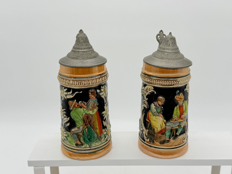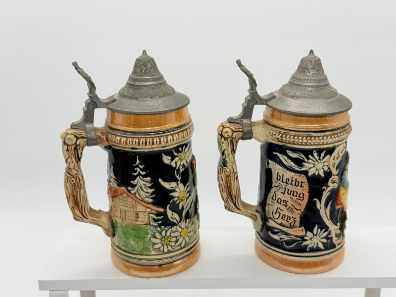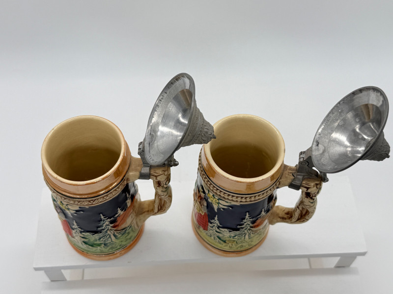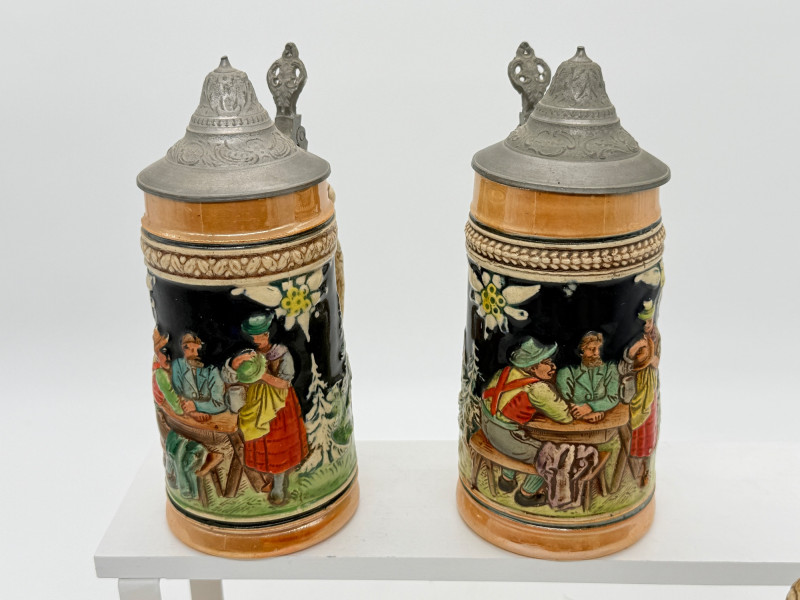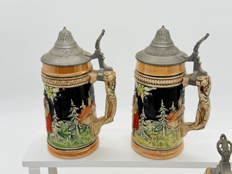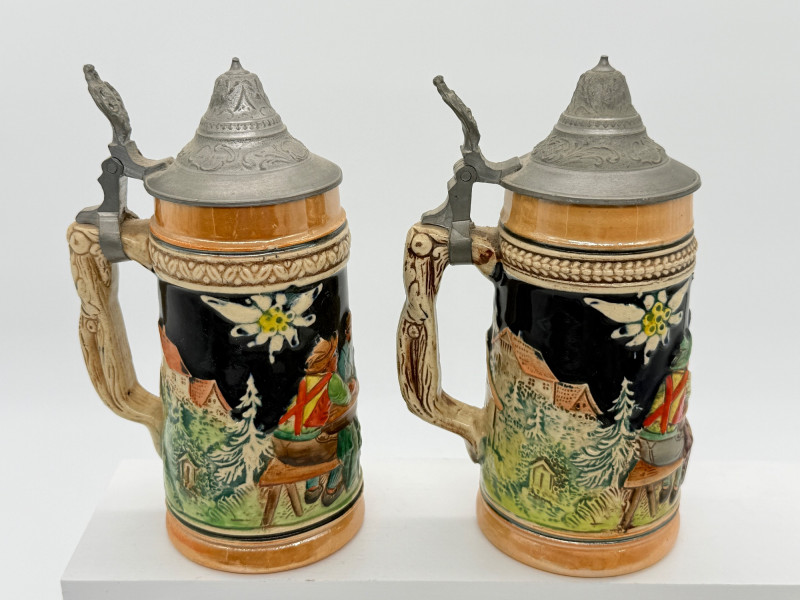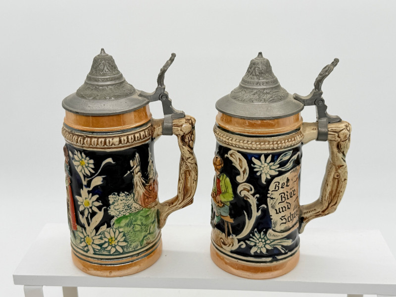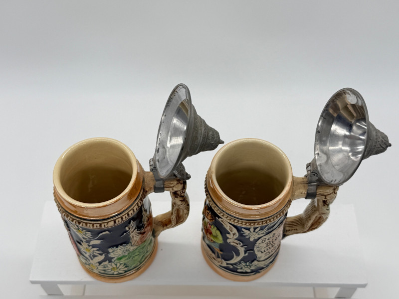 Vintage 7" German Beer Steins w/ Pewter Lids