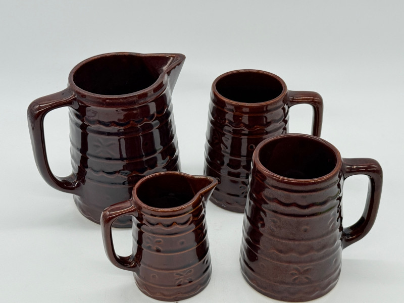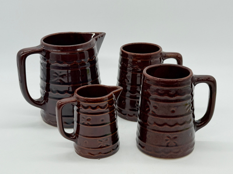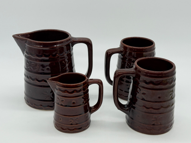 Lot # 161 - Marcrest "Daisy & Dot" Brown Glazed Stoneware Pitchers & Mugs