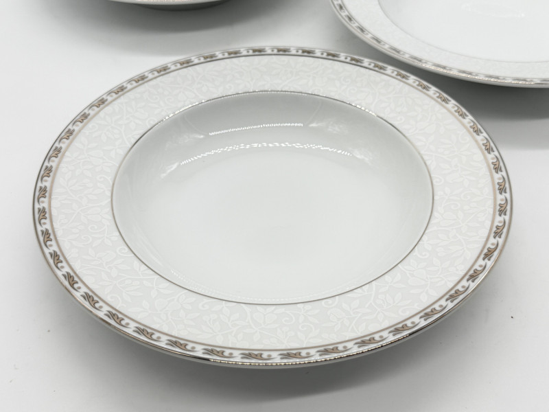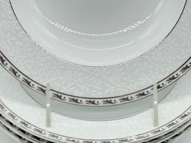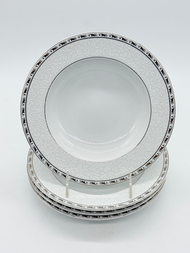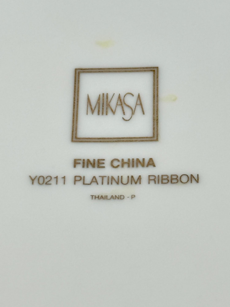 Set of (4) Mikasa "Platinum Ribbon" Fine China Plates https://www.replacements.com/china-mikasa-platinum-ribbon/c/351051