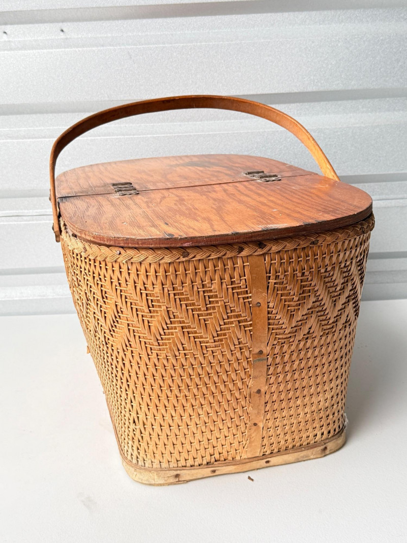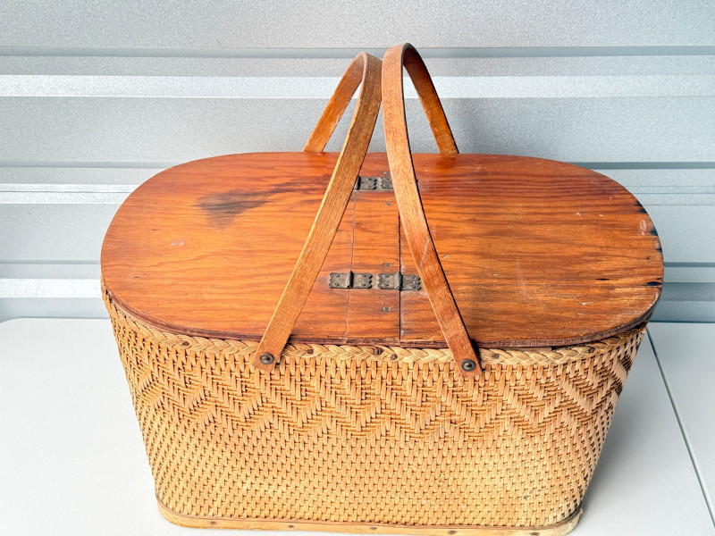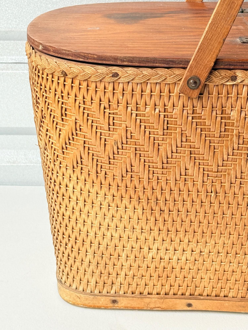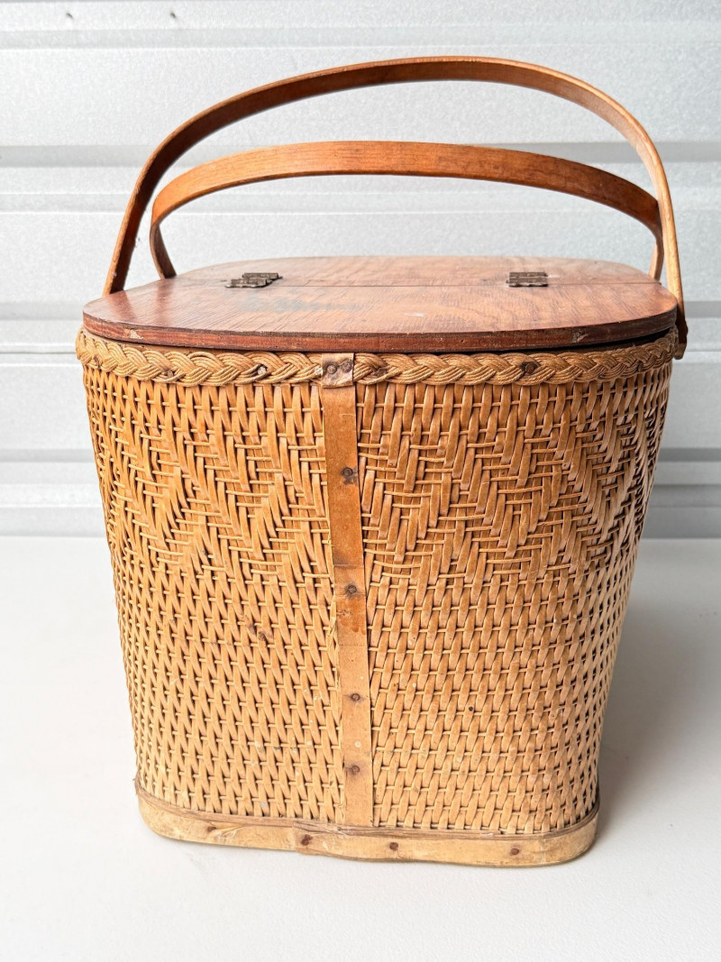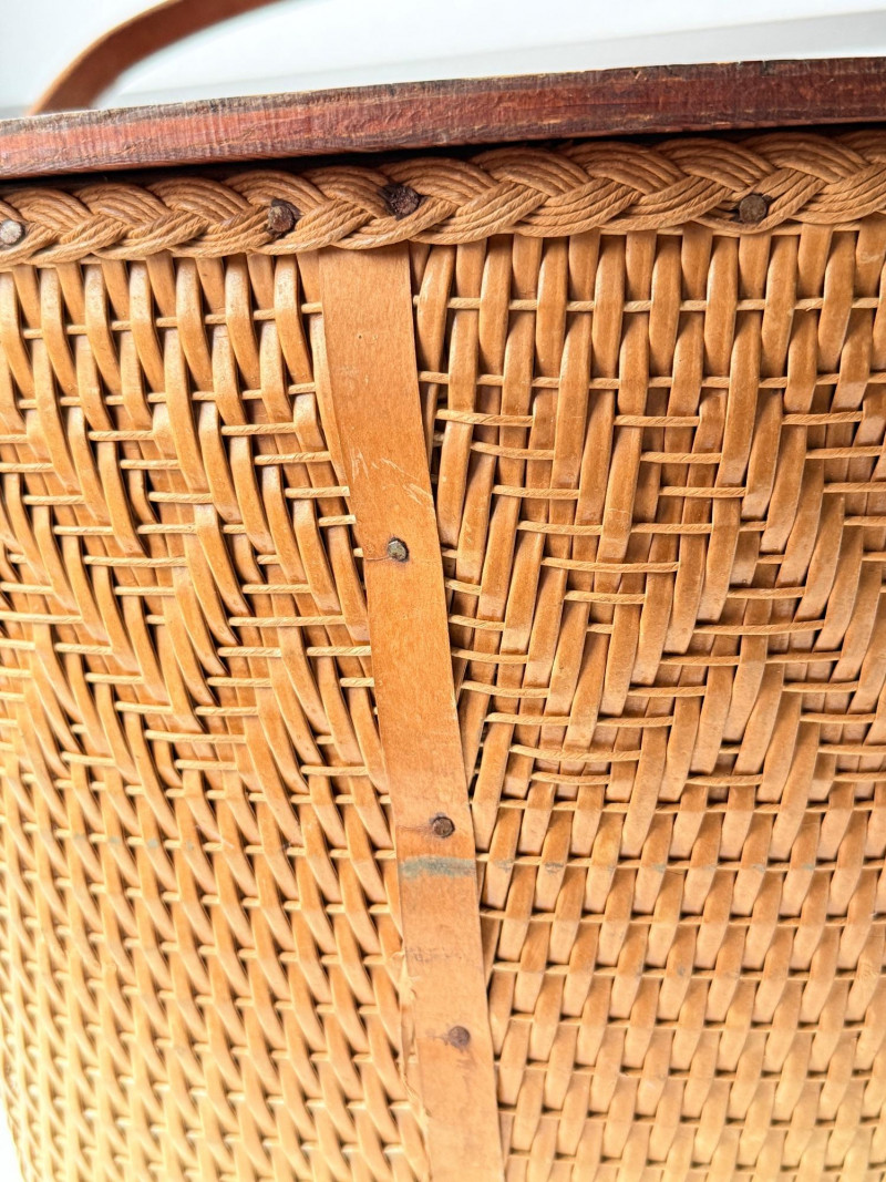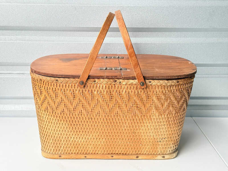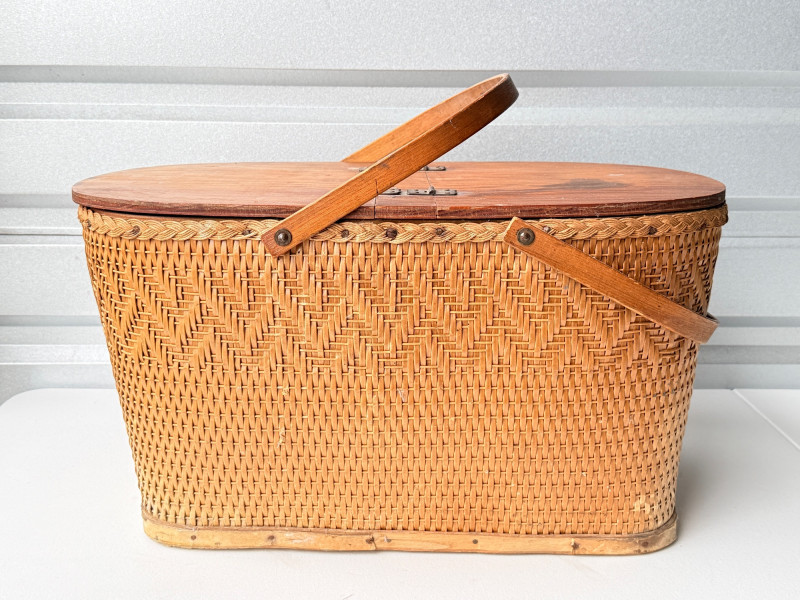 Lot # 41 - Vintage Woven Wicker Basket w/ Wood Handles