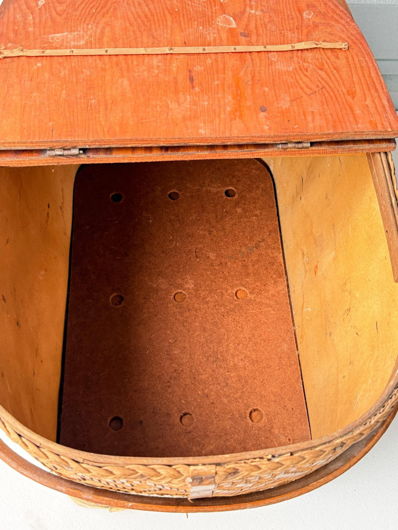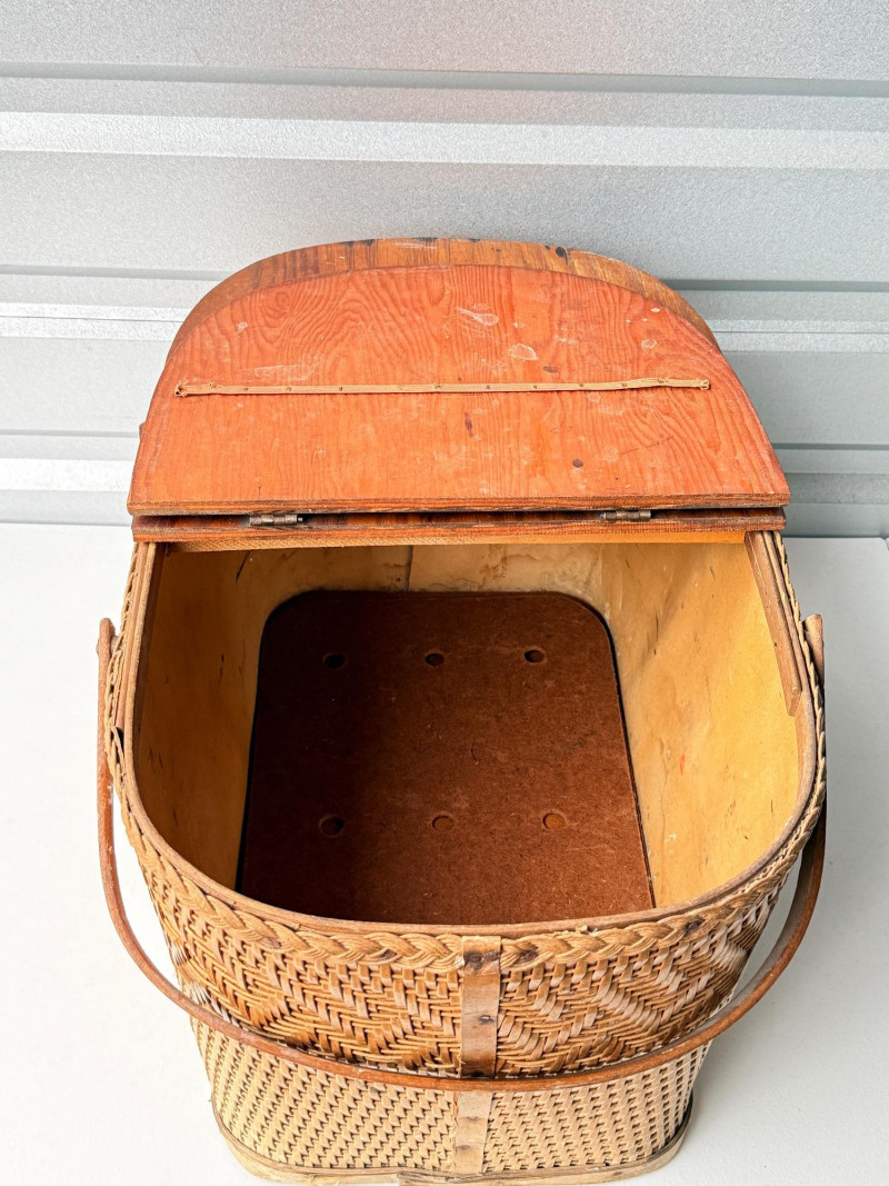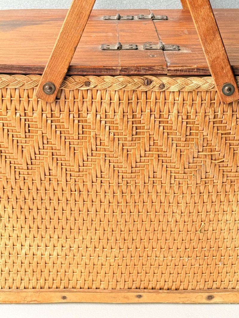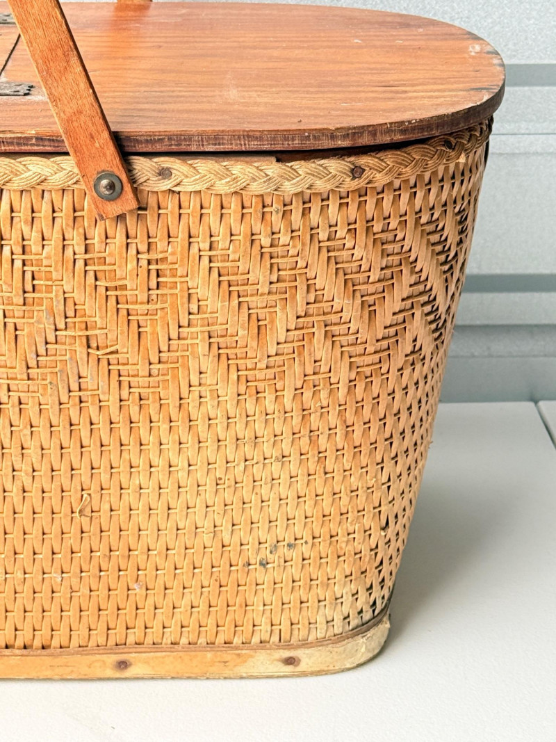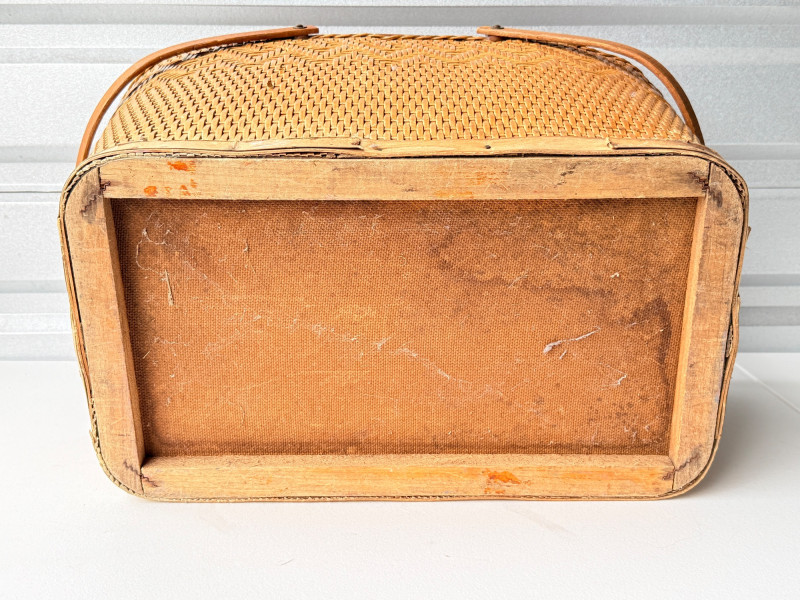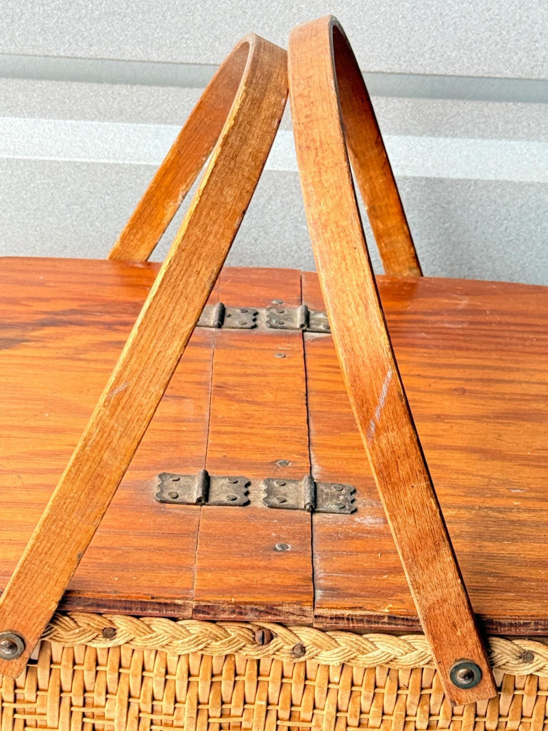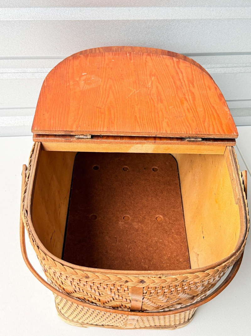 Lot # 41 - Vintage Woven Wicker Basket w/ Wood Handles