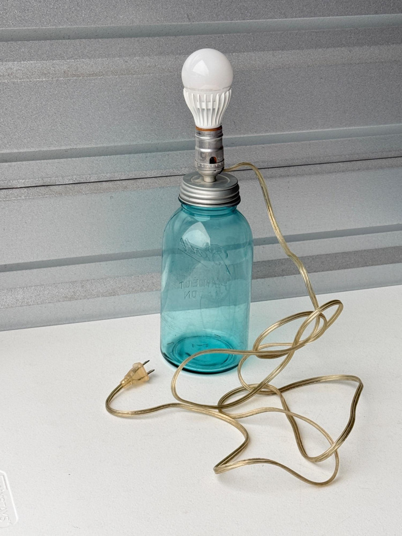 Lot # 27 - Vintage Aqua Blue Ball Perfect Mason Jar Table Lamp
