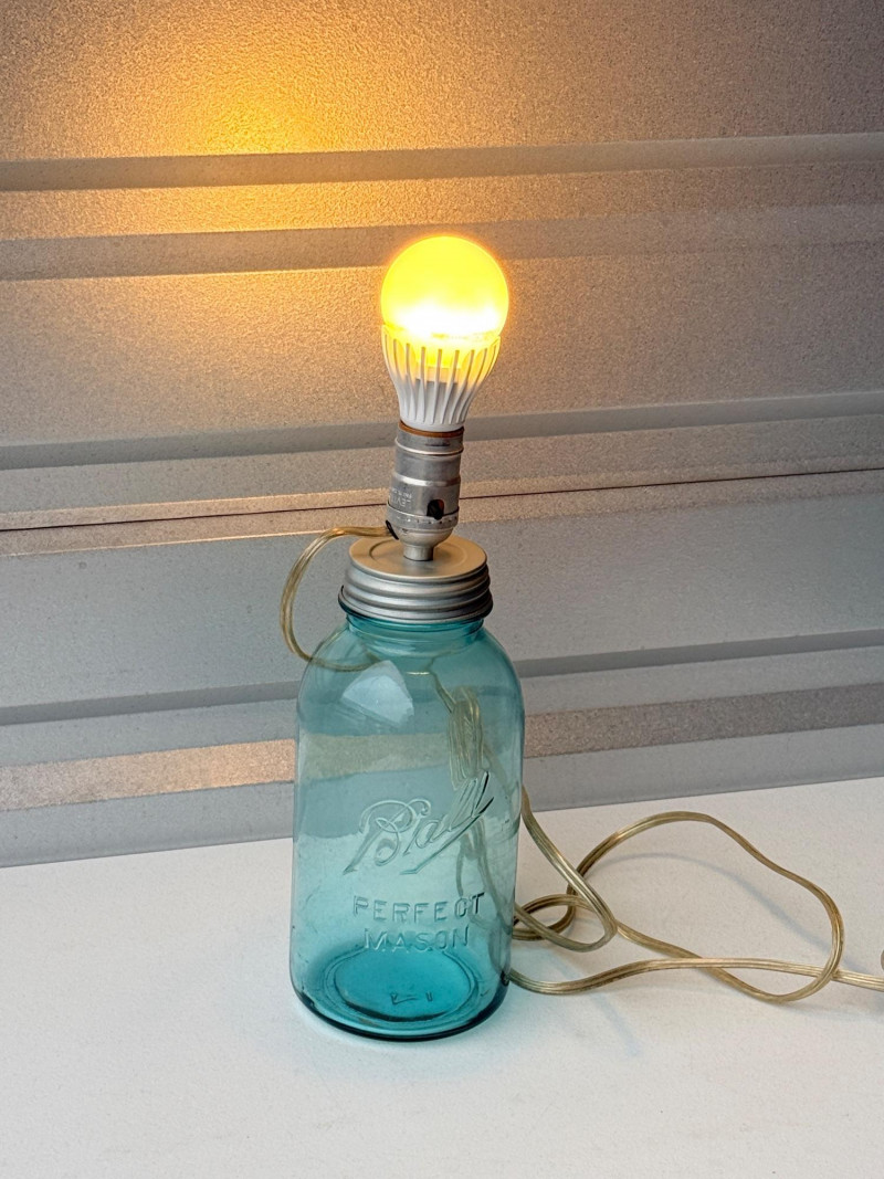 Vintage Aqua Blue Ball Perfect Mason Jar Table Lamp