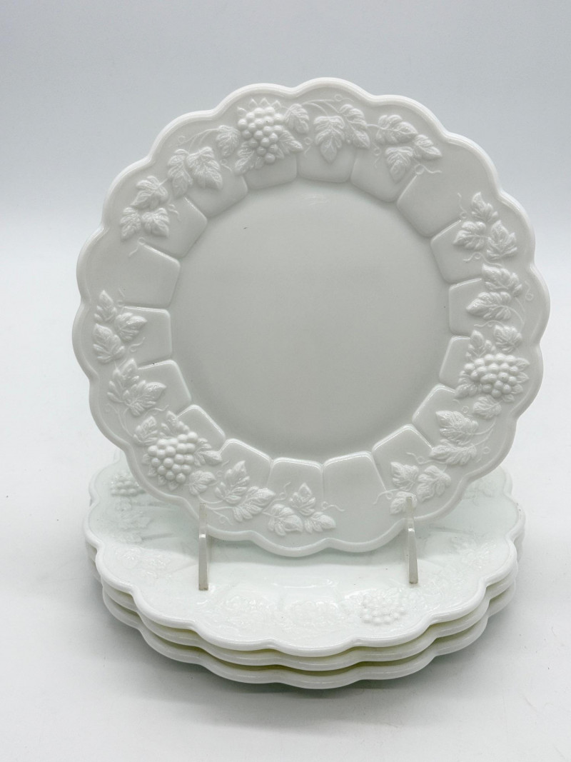 Lot # 94 - Westmoreland Paneled Grape White Milk Glass Dinner Plates