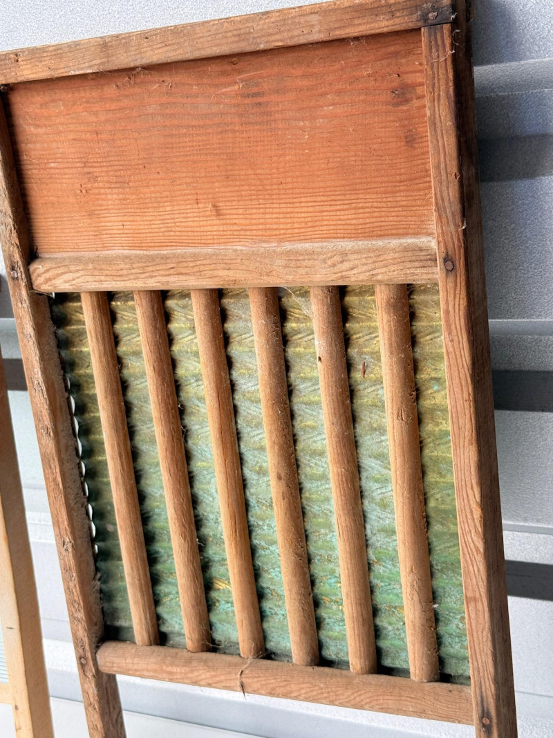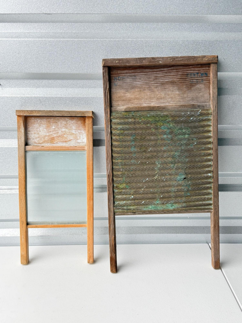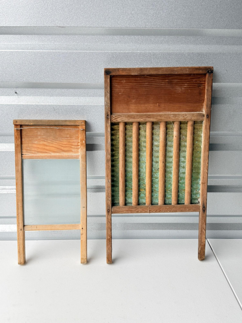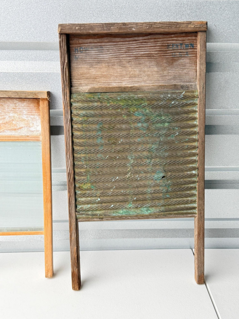 Lot # 51 - Vintage Wood & Glass + Wood & Metal Washboard