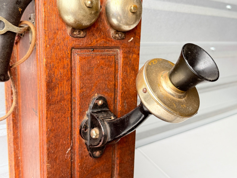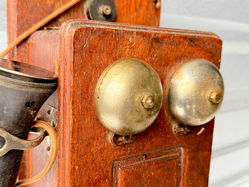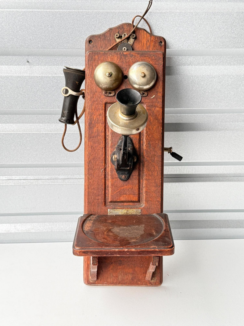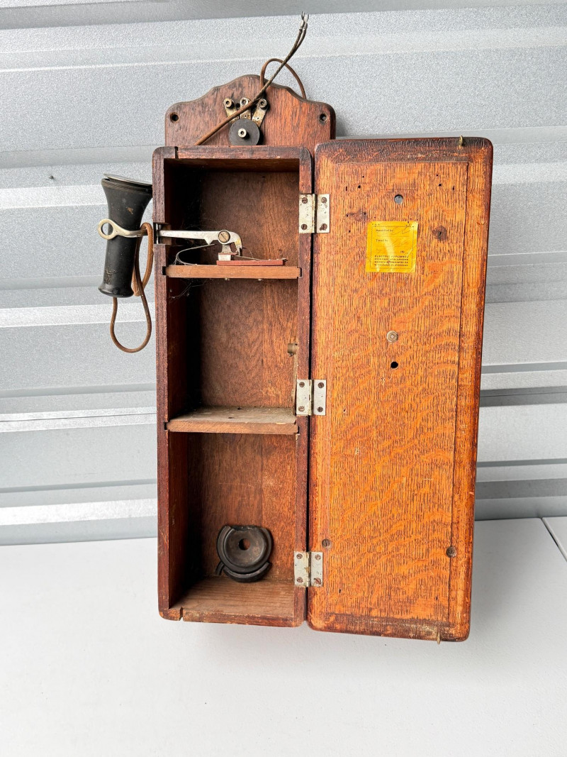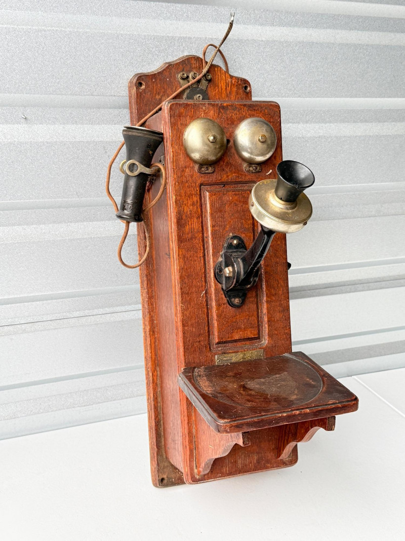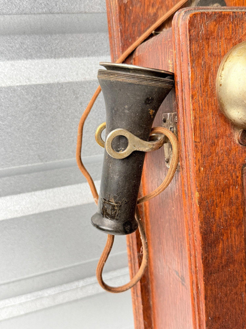 Antique Kellogg Quarter-Sawn Oak Wall Telephone