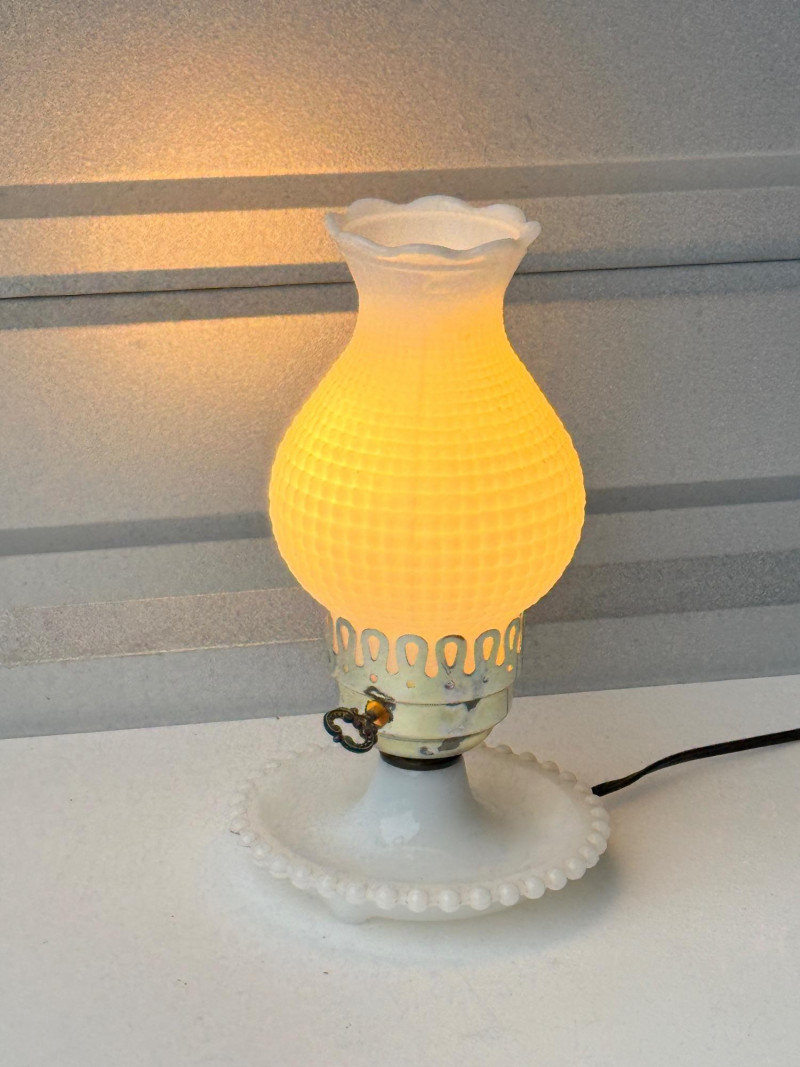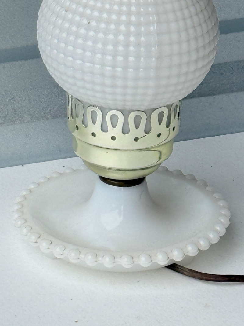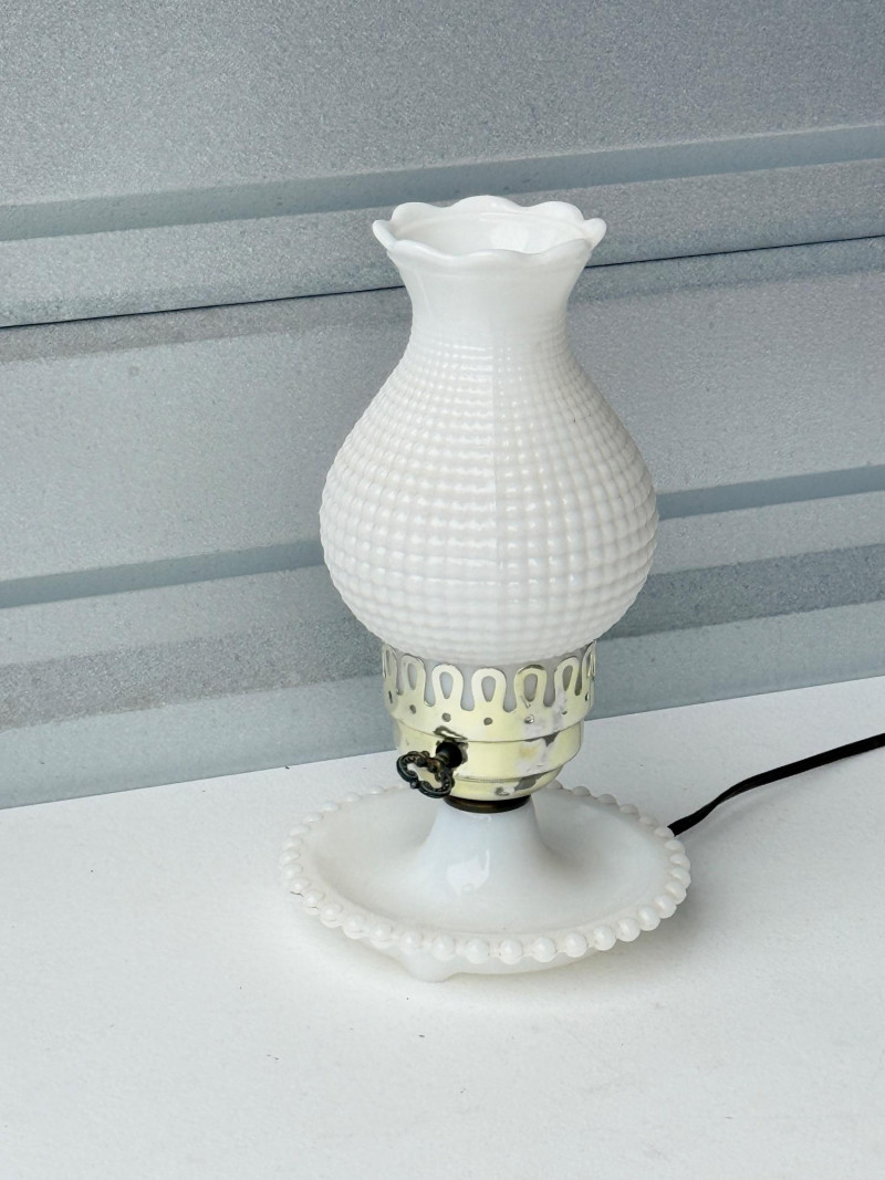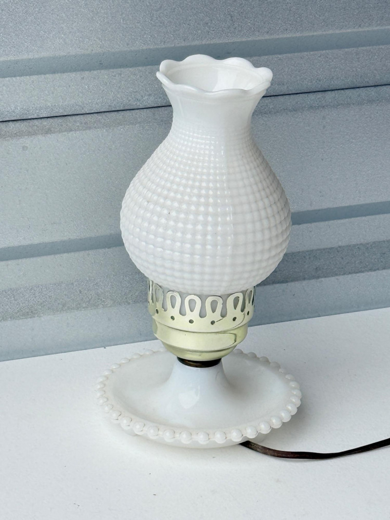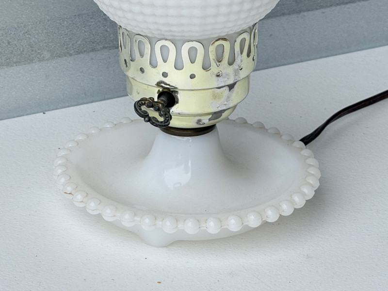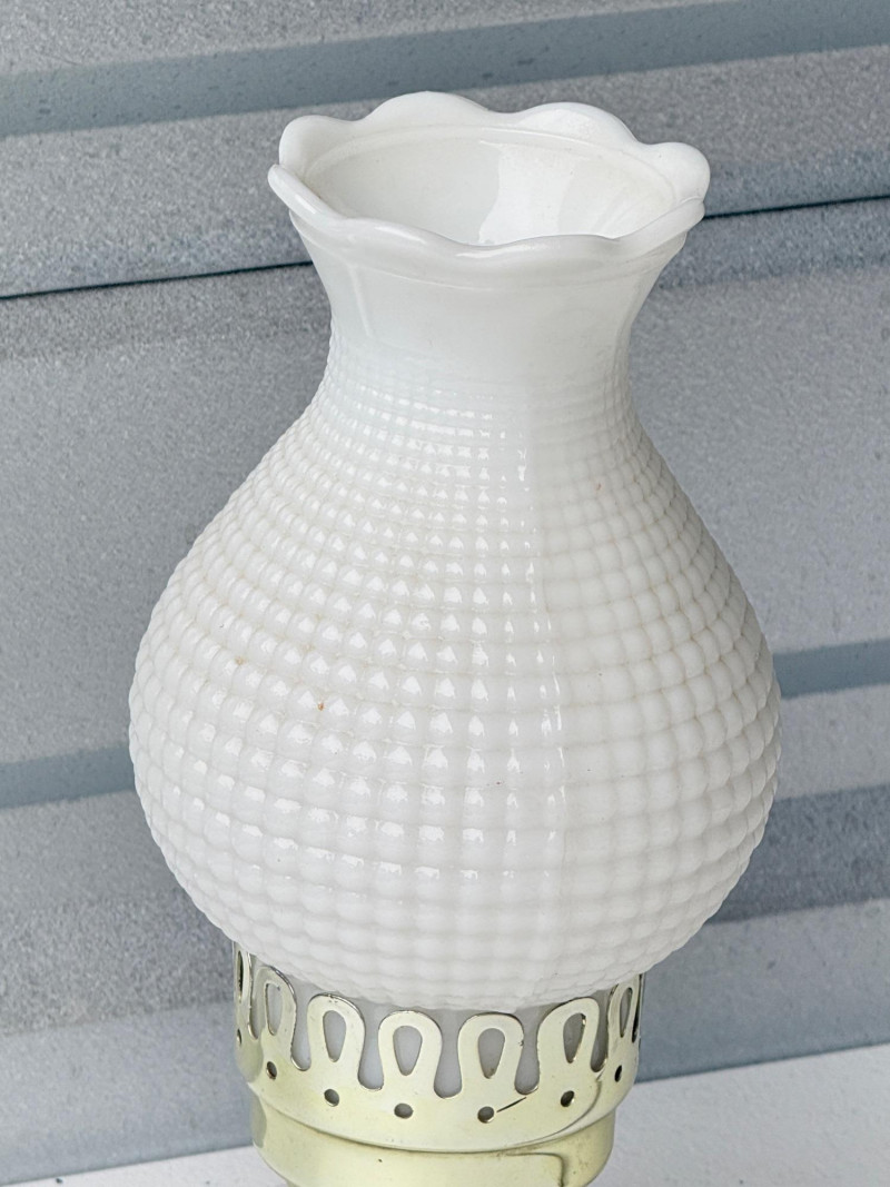 Vintage White Milk Glass Hobnail Hurricane Lamp