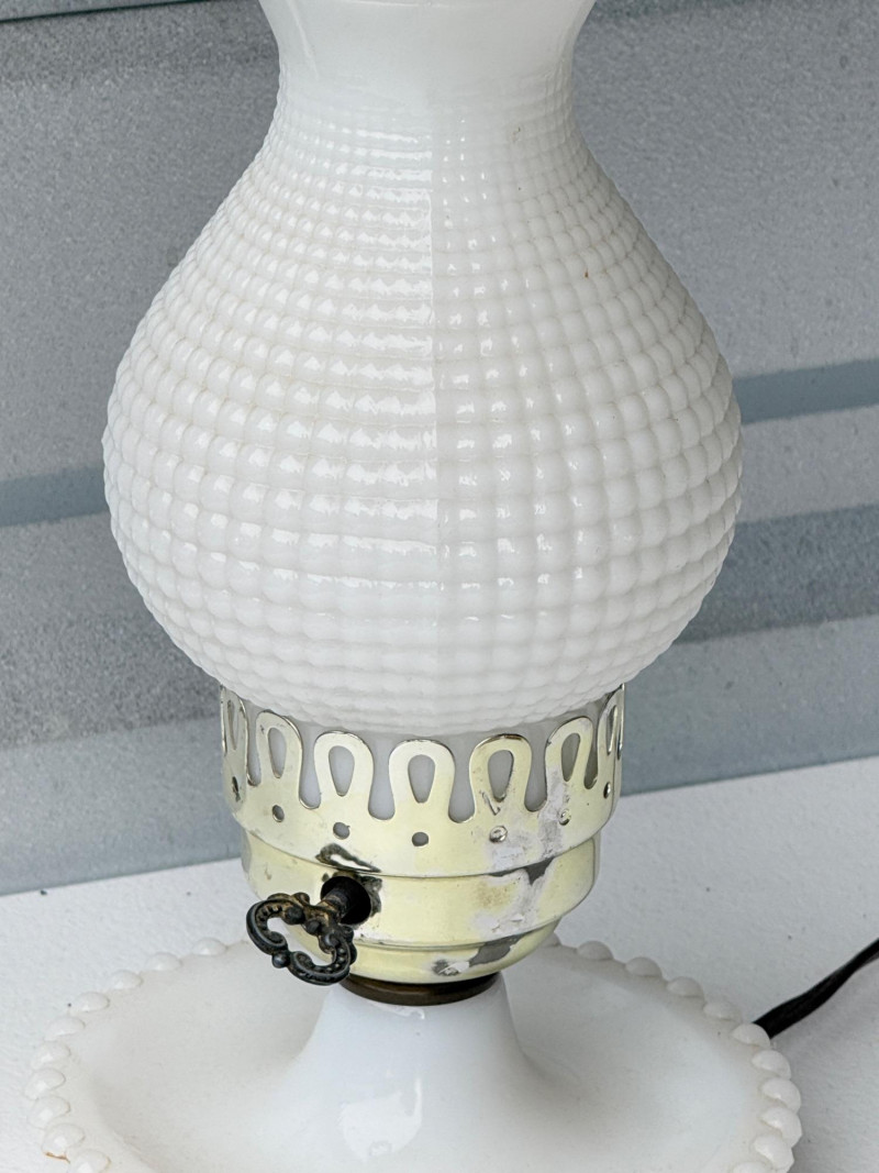 Lot # 71 - Vintage White Milk Glass Hobnail Hurricane Lamp