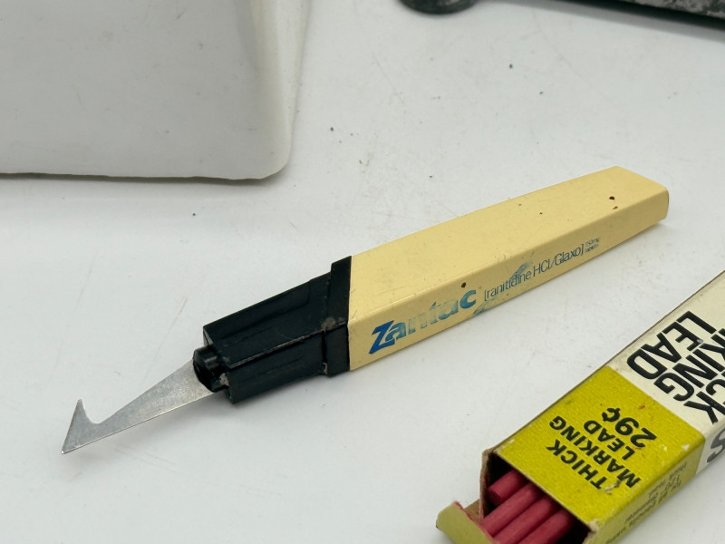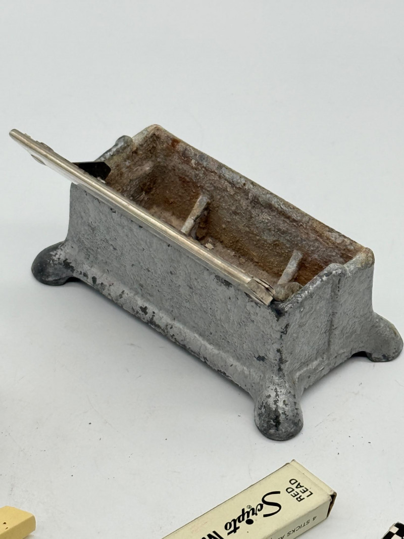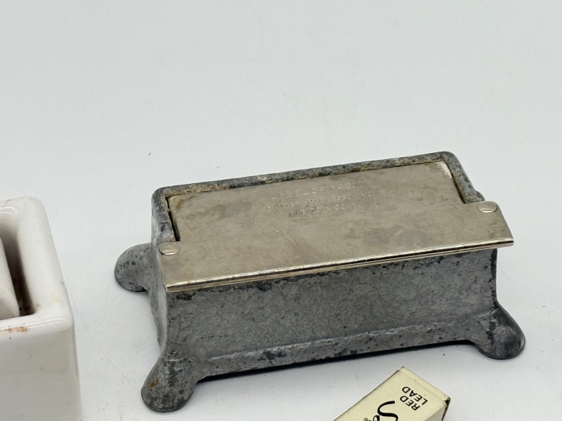 Vintage Porcelain & Cast Iron Stamp Moister, Date Stamp & More