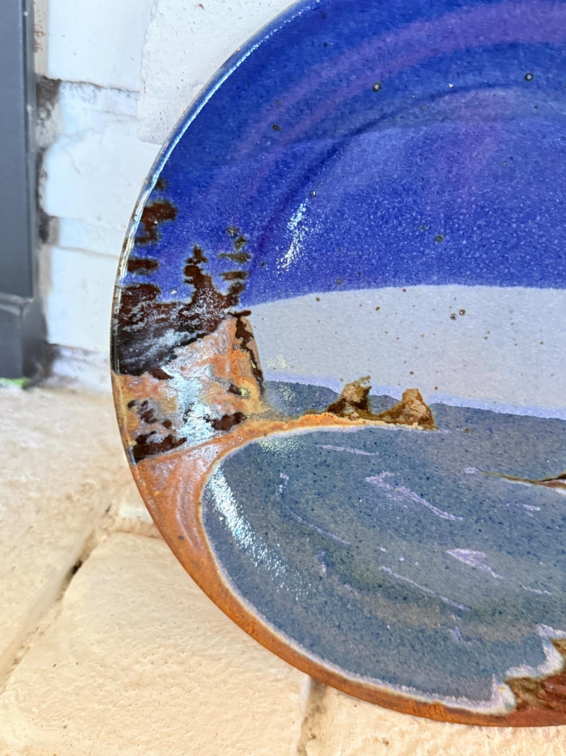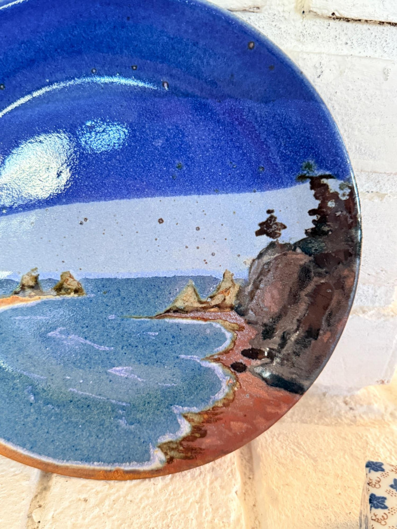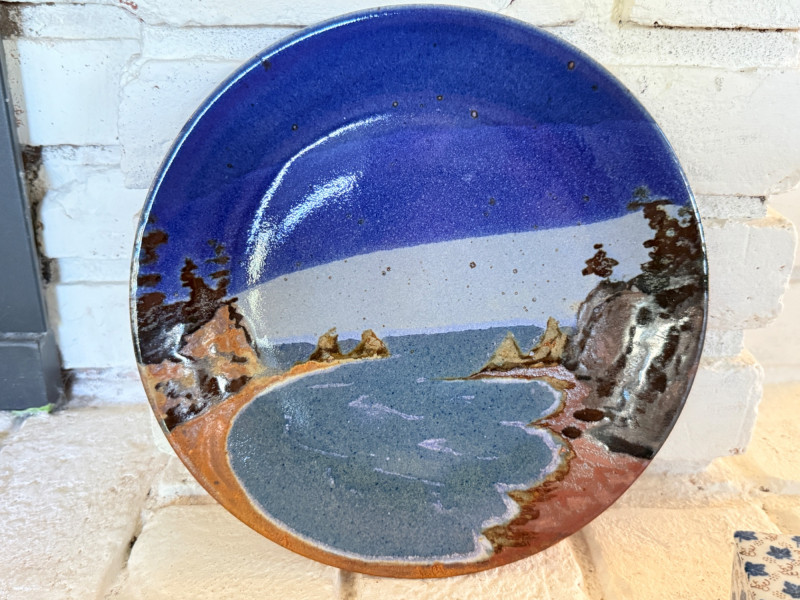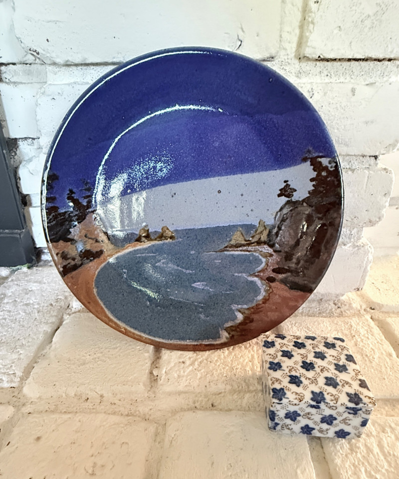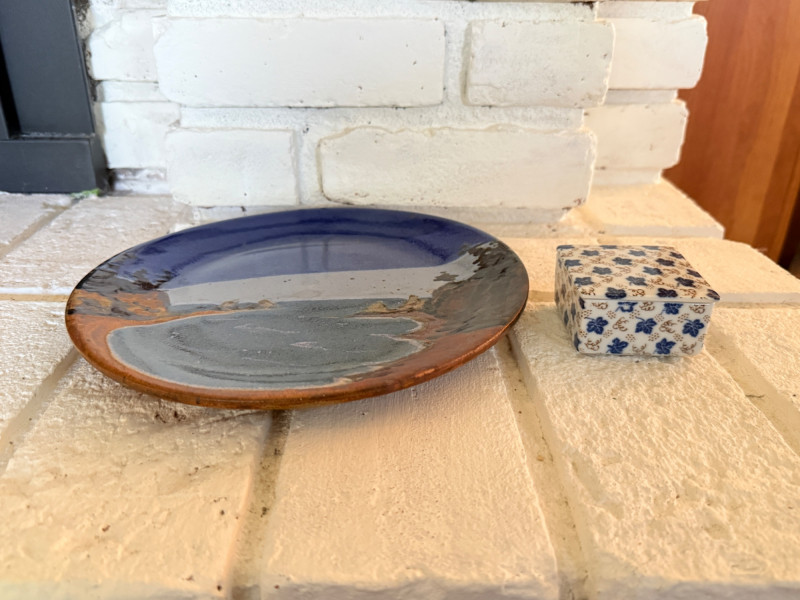 Pottery Scenery Plate, Signed & Porcelain Trinket Box