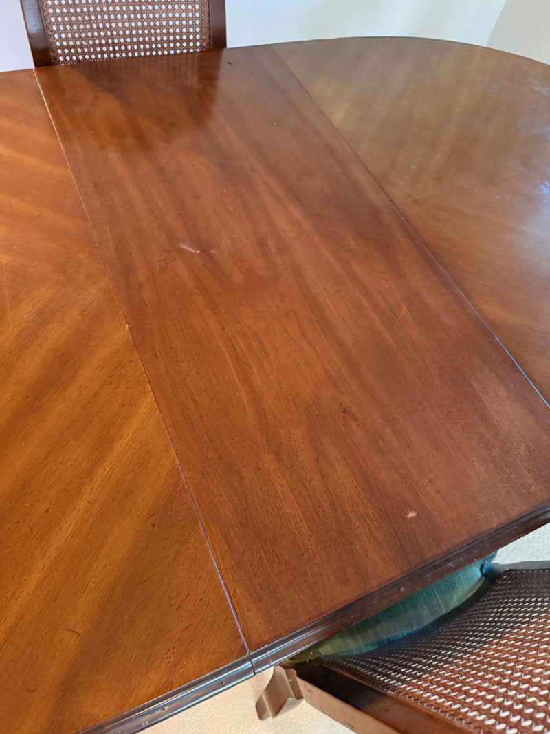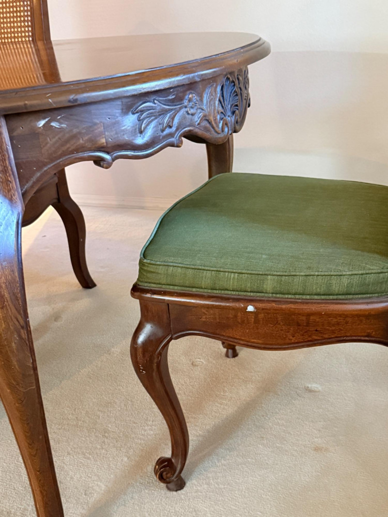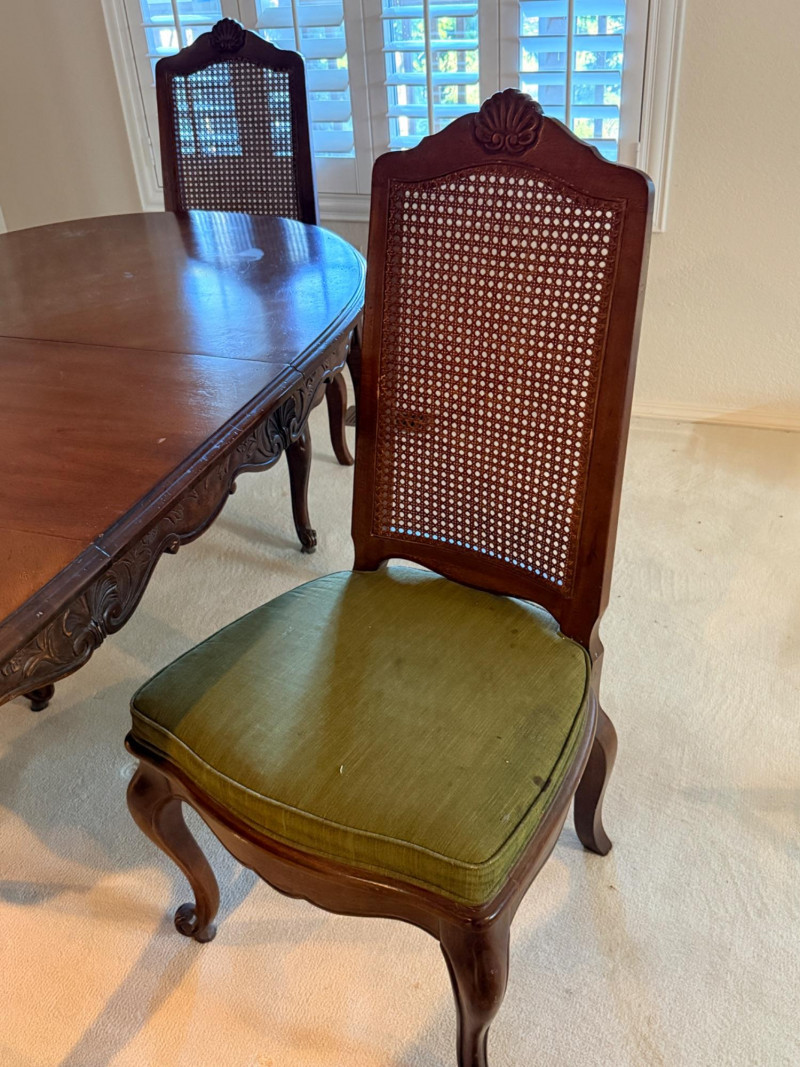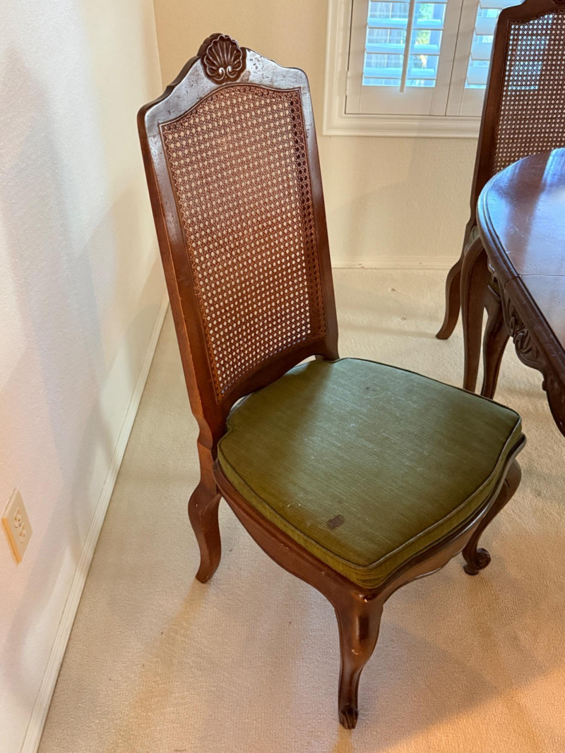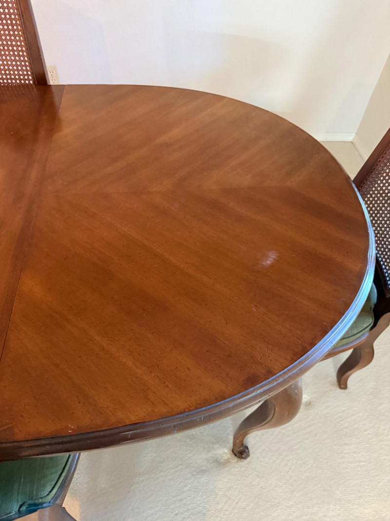 Vintage Rustique - French in the Country Manner Table & Chairs w/Two Leaf Inserts - By Drexel Table Size: Extra Table Insert: Chairs: *Note - Normal wear & tear, see photos * Located on the first floor Bidding on this lot is an agreement that: (1) You will have 2 capable, able bodied persons to lift and load at a minimum. (2) You will bring a hand truck and/or any other tools needed to remove this item. If these steps are not followed your next item will be forfeit and no refund given.