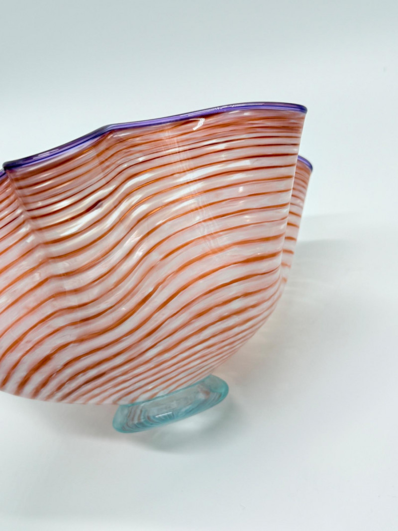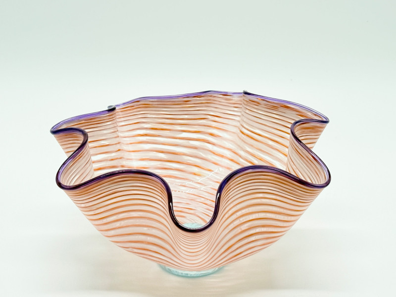 Hand-Blown Murano-Style Studio Art Glass Bowl, Signed