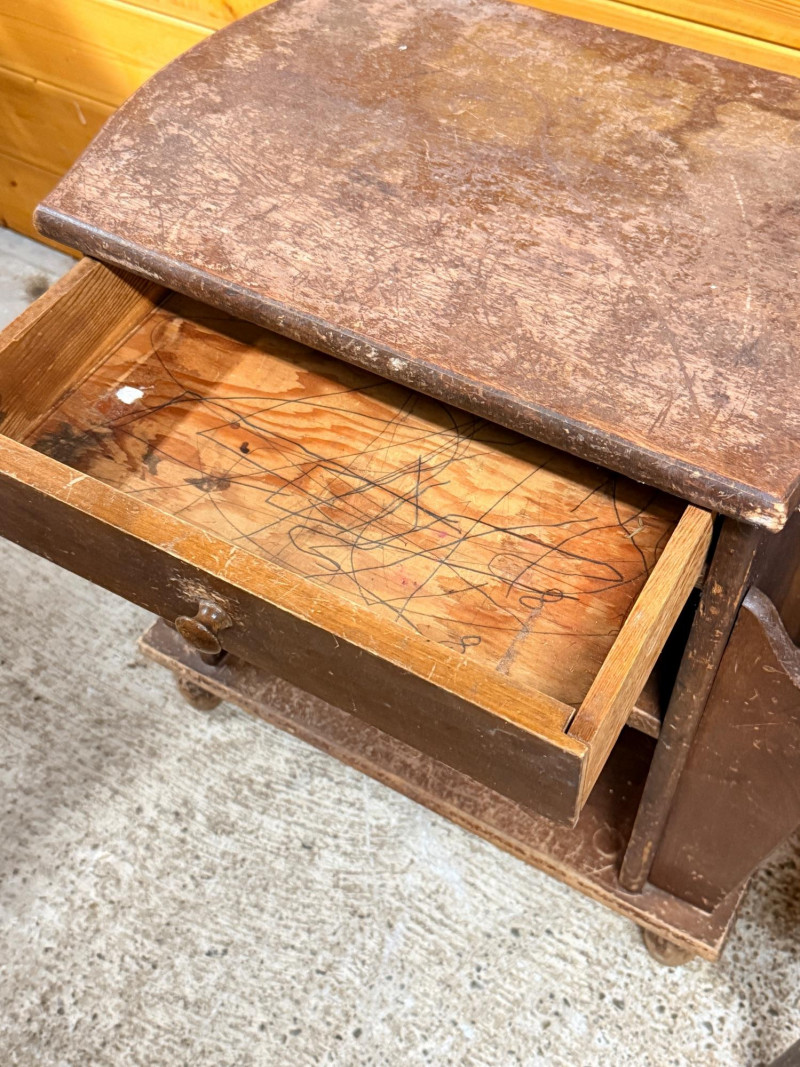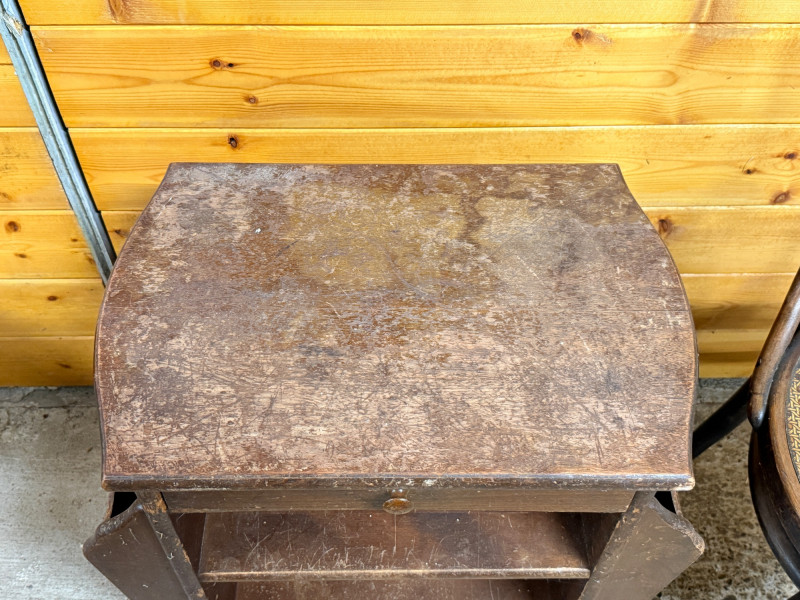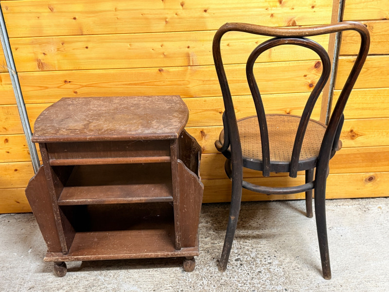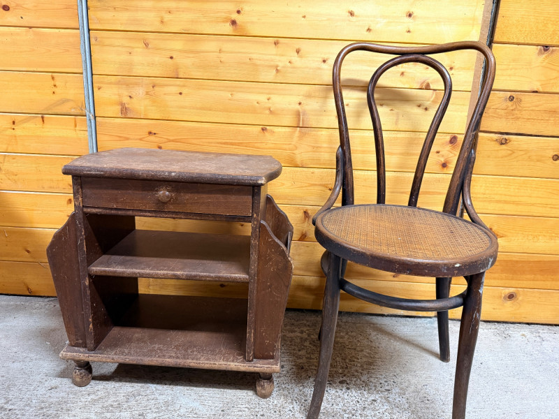 Vintage Wooden Side Table & Chair Side Table: Chair:
