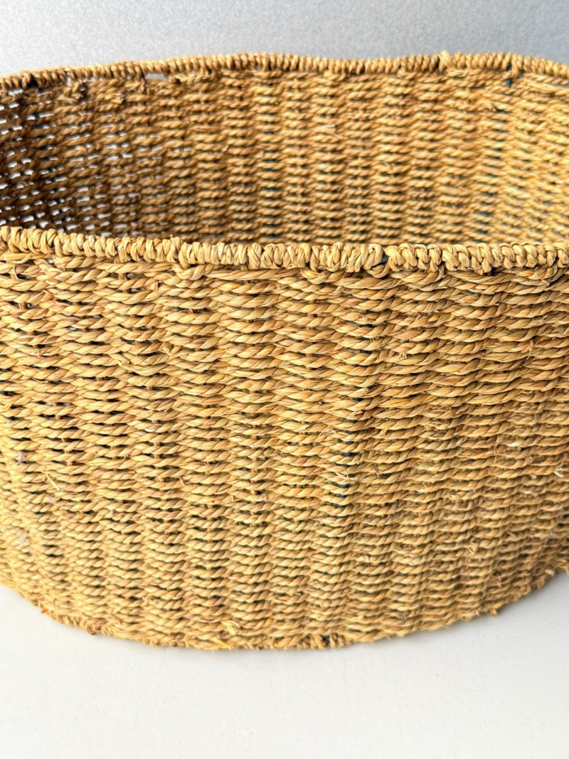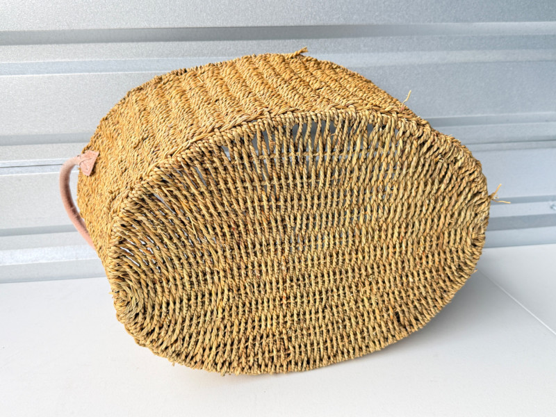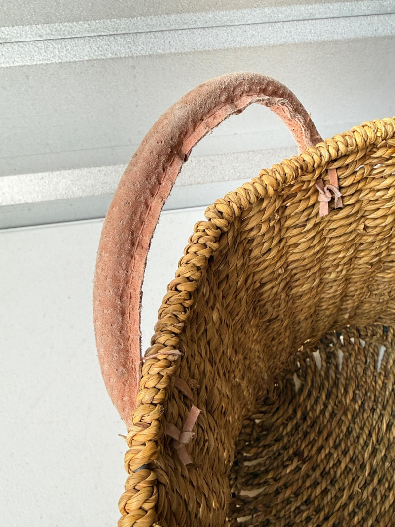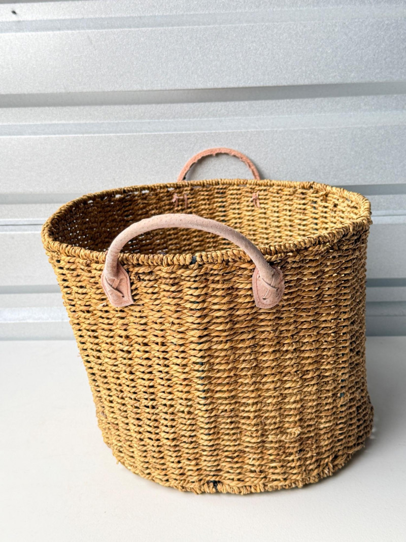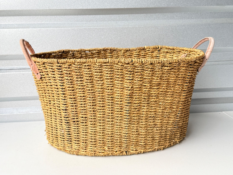Lot # 132 - Handwoven Basket w/ Leather Handles