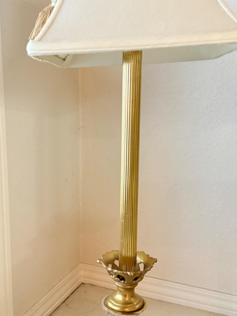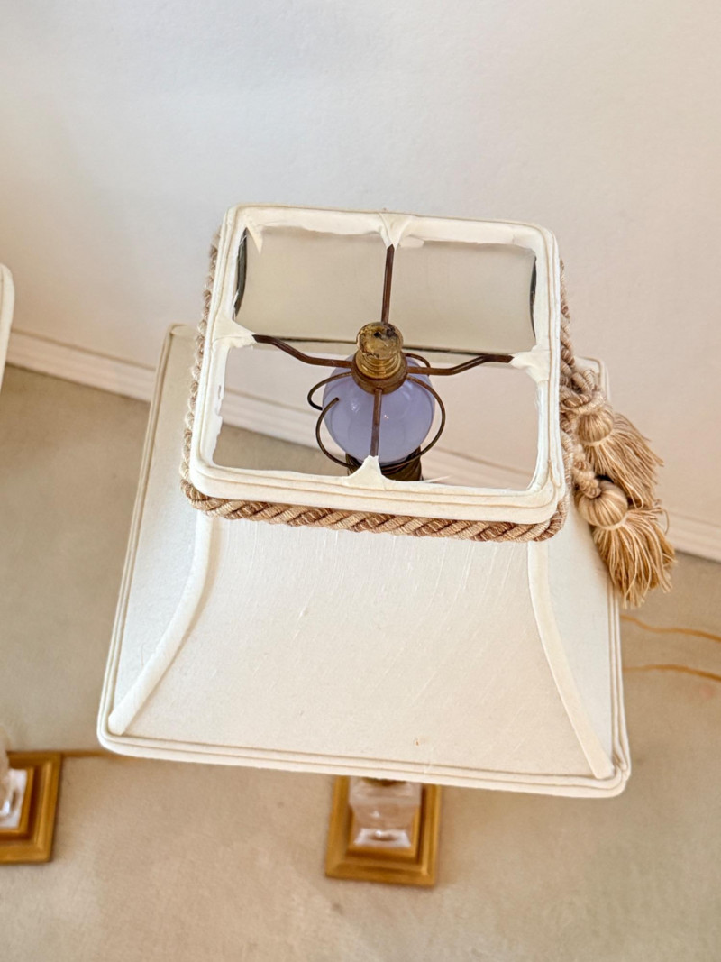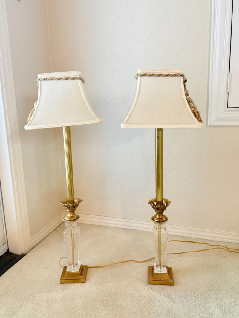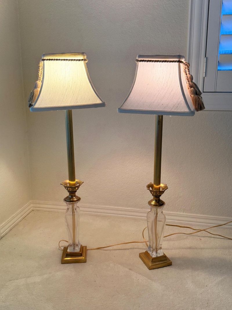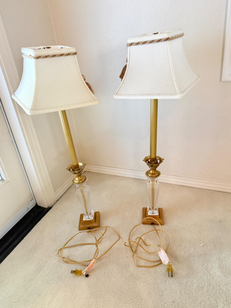 Vintage Brass and Crystal/Glass Table Lamps Disclaimer: We do not test the metals of the items listed for auction. By placing a bid, you acknowledge and agree that you are purchasing the item "as is" and without any guarantee of metal quality. We do not offer refunds based on metal content or purity.
