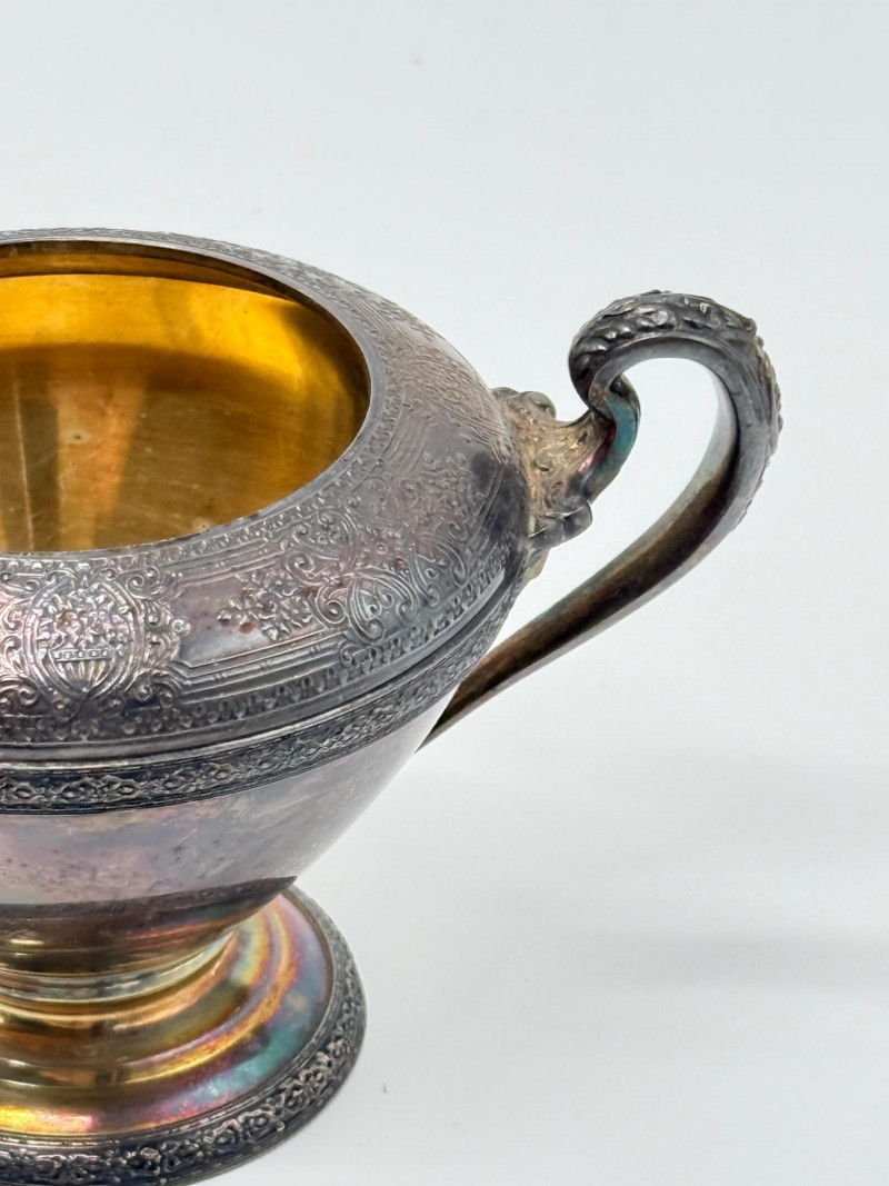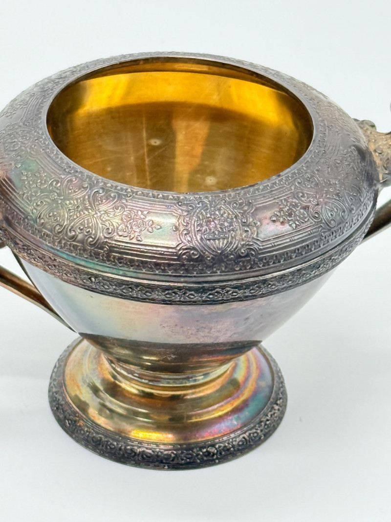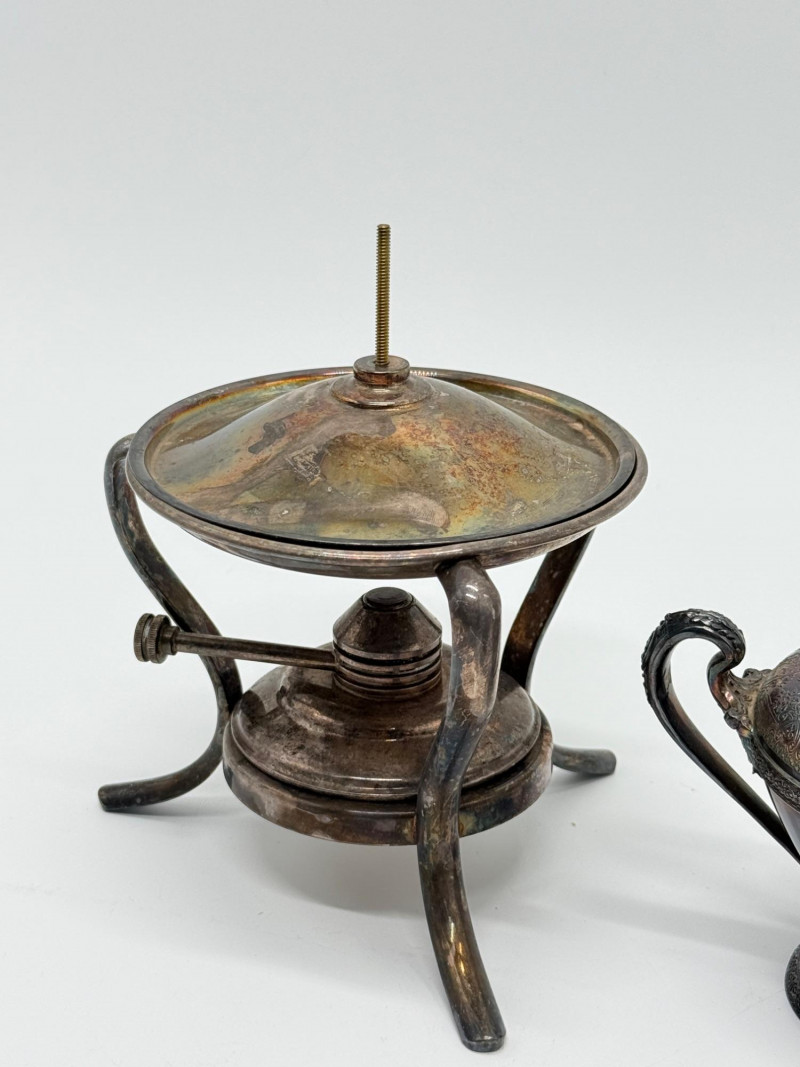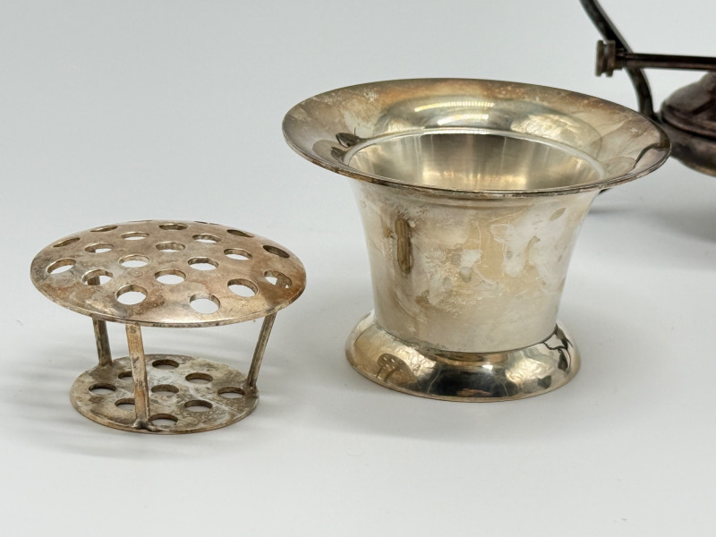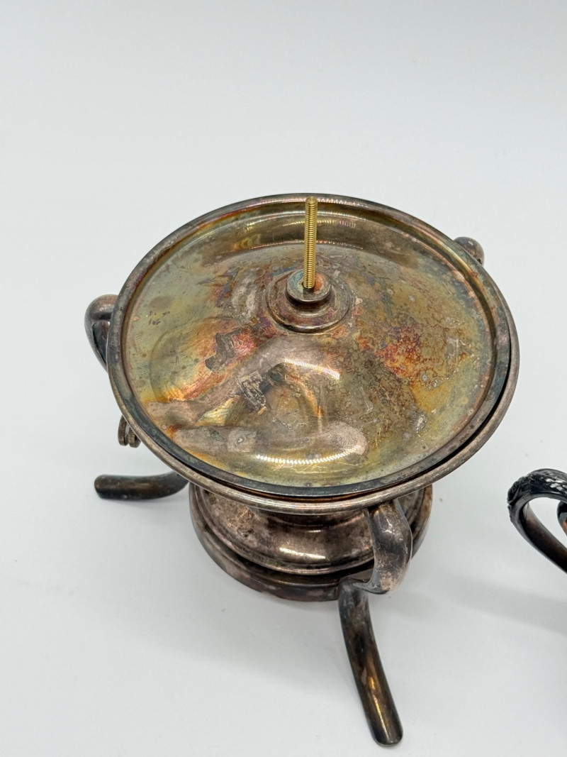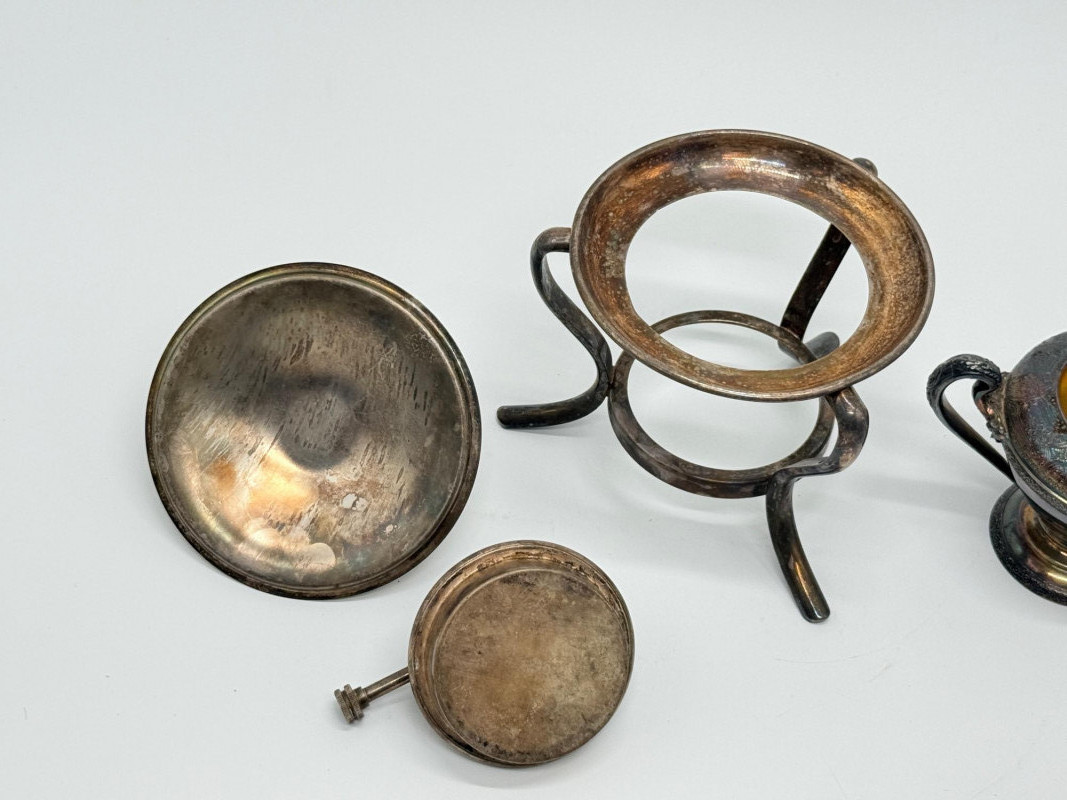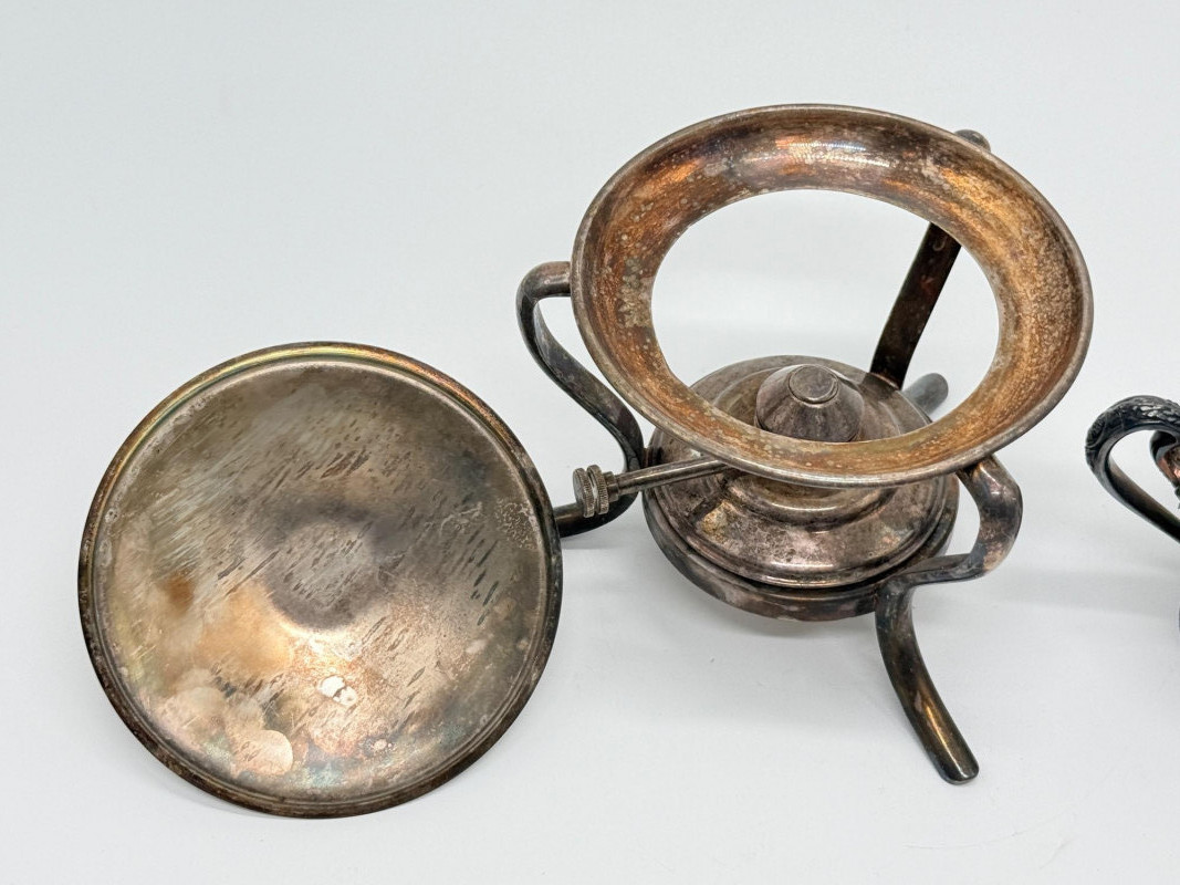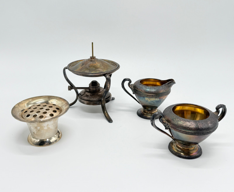 Vintage Silver-Plated Sugar & Creamer, Warming Stand & Flower Holder Disclaimer: We do not test the metals of the items listed for auction. By placing a bid, you acknowledge and agree that you are purchasing the item "as is" and without any guarantee of metal quality. We do not offer refunds based on metal content or purity.