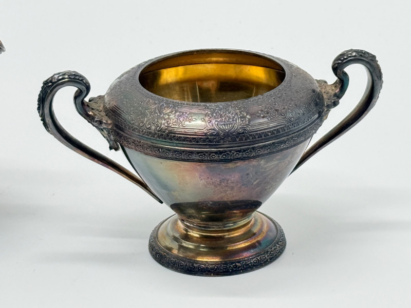 Lot # 75 - Vintage Silver-Plated Sugar & Creamer, Warming Stand & Flower Holder