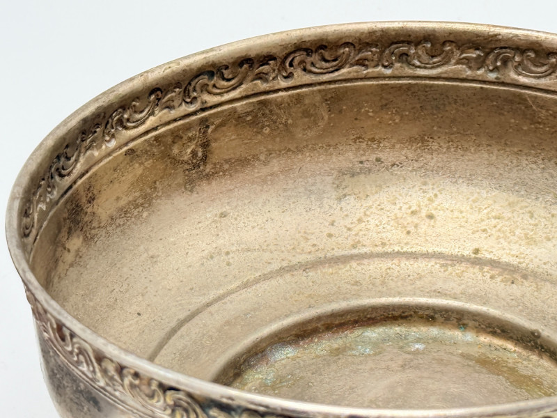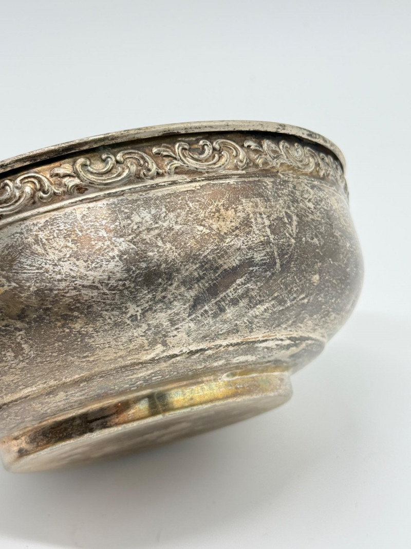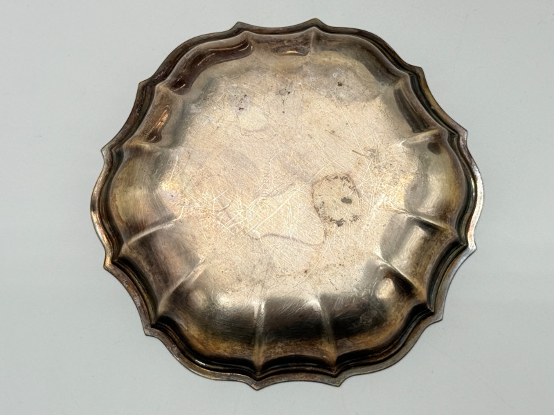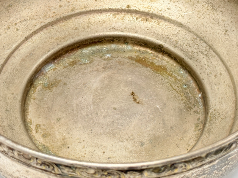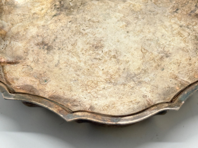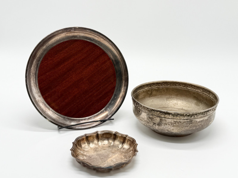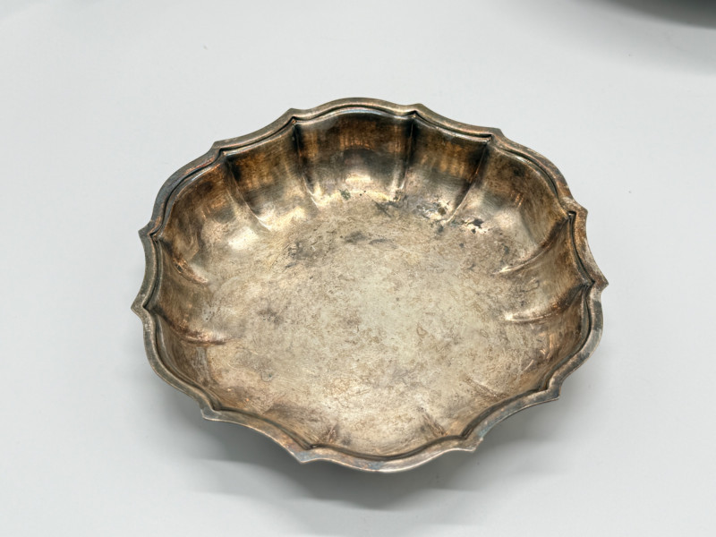 Vintage Silver-Plated Faux Wood Tray, Serving Bowl & Scalloped Bowl Disclaimer: We do not test the metals of the items listed for auction. By placing a bid, you acknowledge and agree that you are purchasing the item "as is" and without any guarantee of metal quality. We do not offer refunds based on metal content or purity.