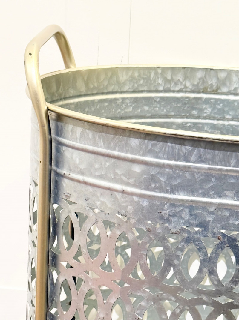 Galvanized Metal Rolling Tub w/Decorative Cut-Outs