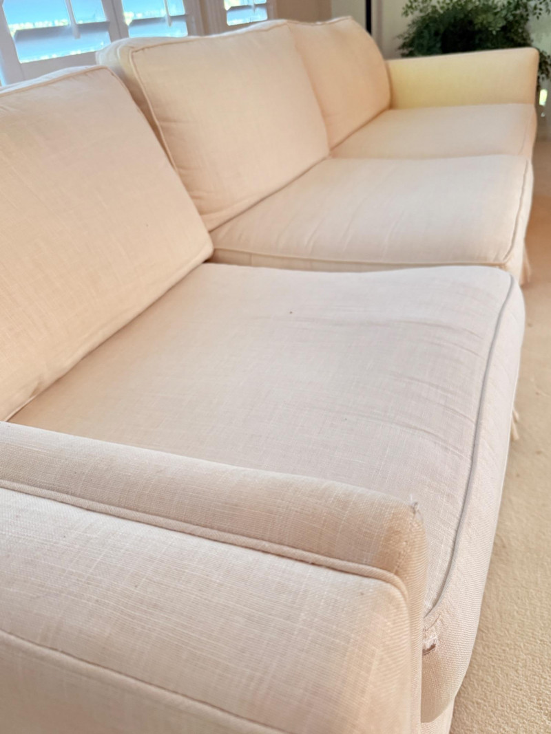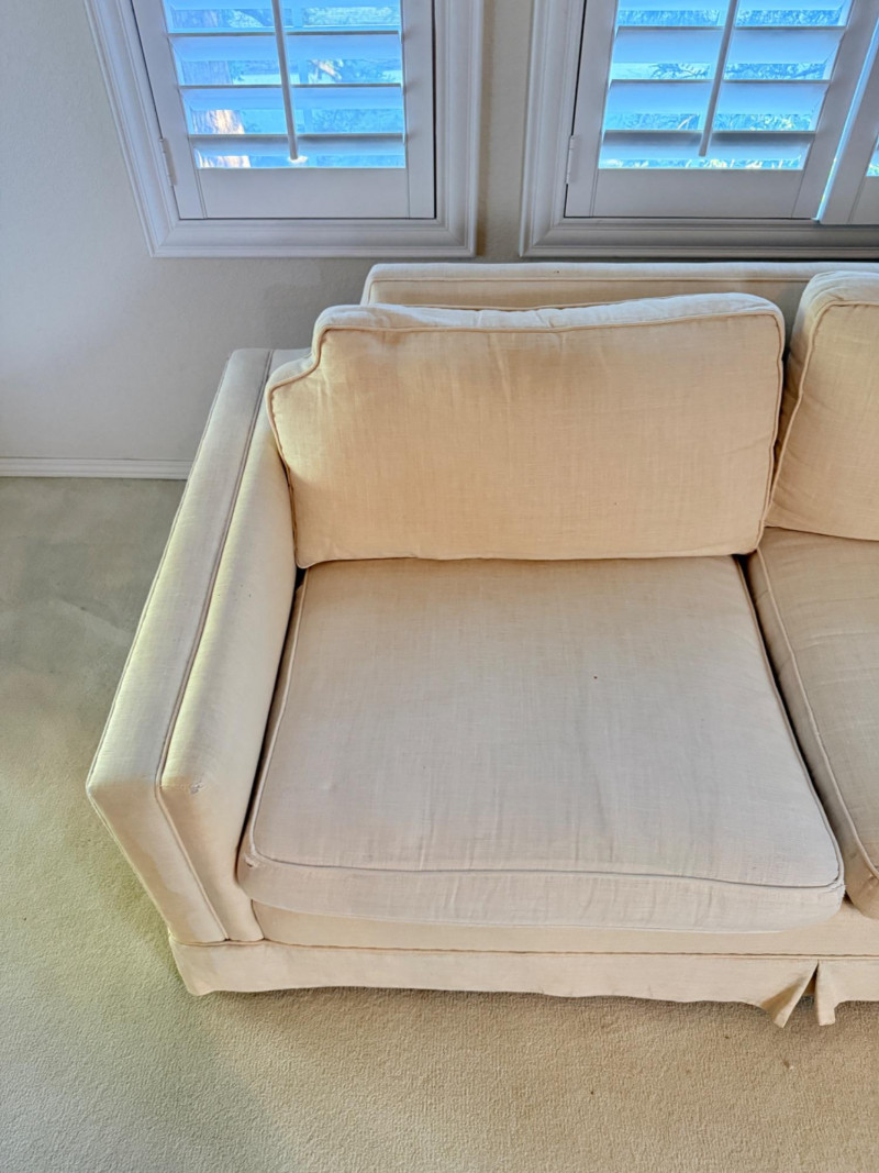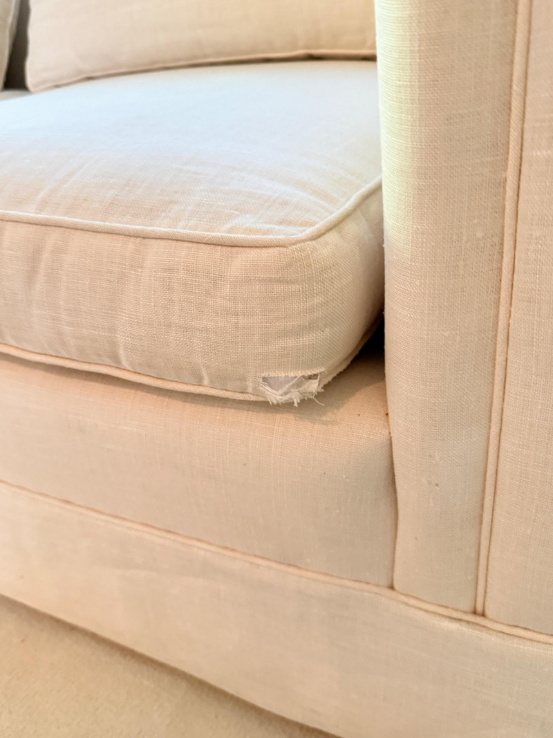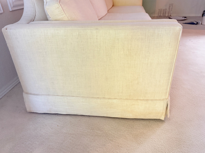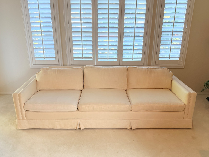 Traditional English-Arm Wooden Frame Sofa Bidding on this lot is an agreement that: (1) You will have 2 capable, able bodied persons to lift and load at a minimum. (2) You will bring a hand truck and/or any other tools needed to remove this item. If these steps are not followed your next item will be forfeit and no refund given.