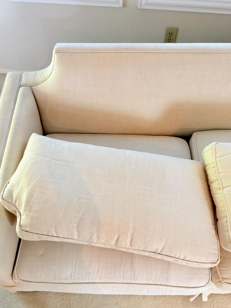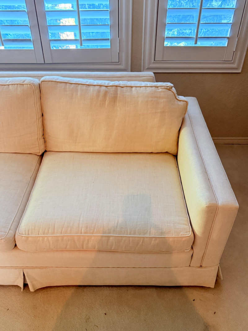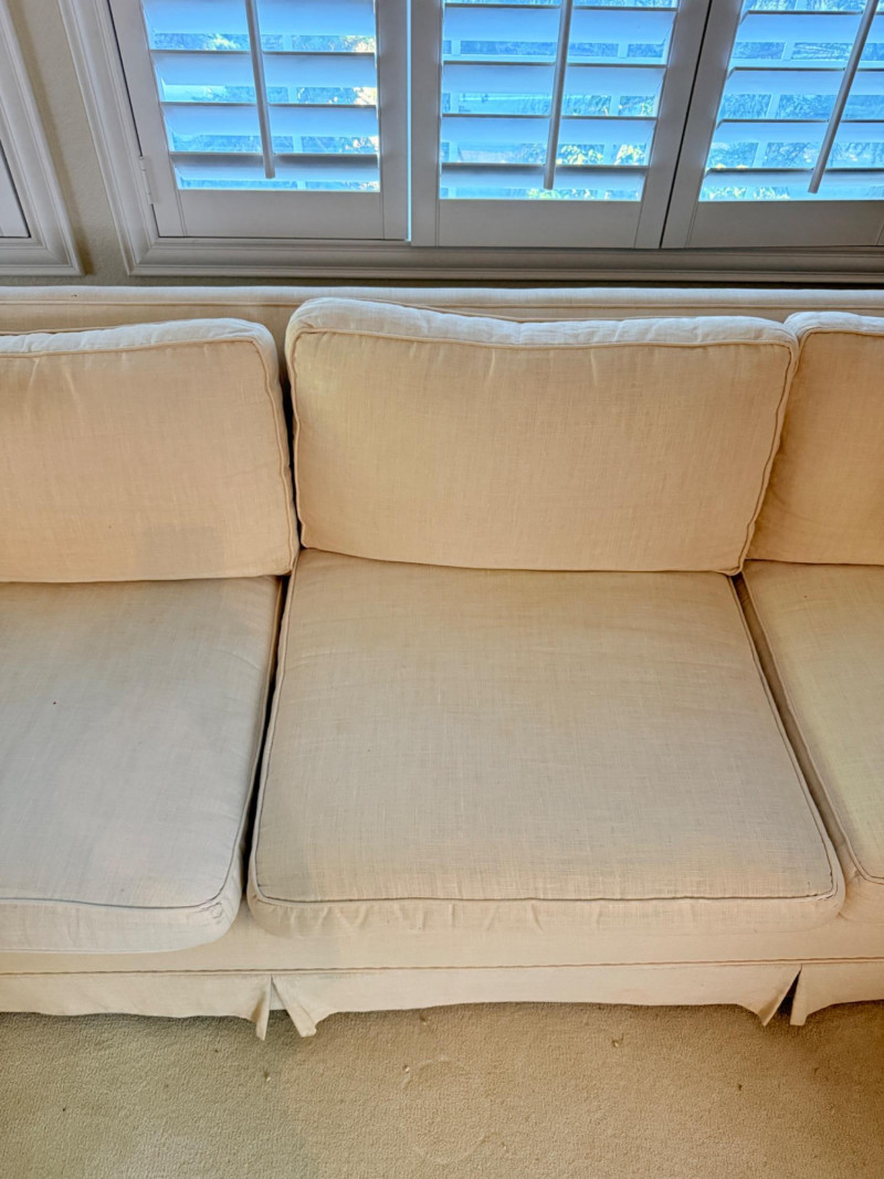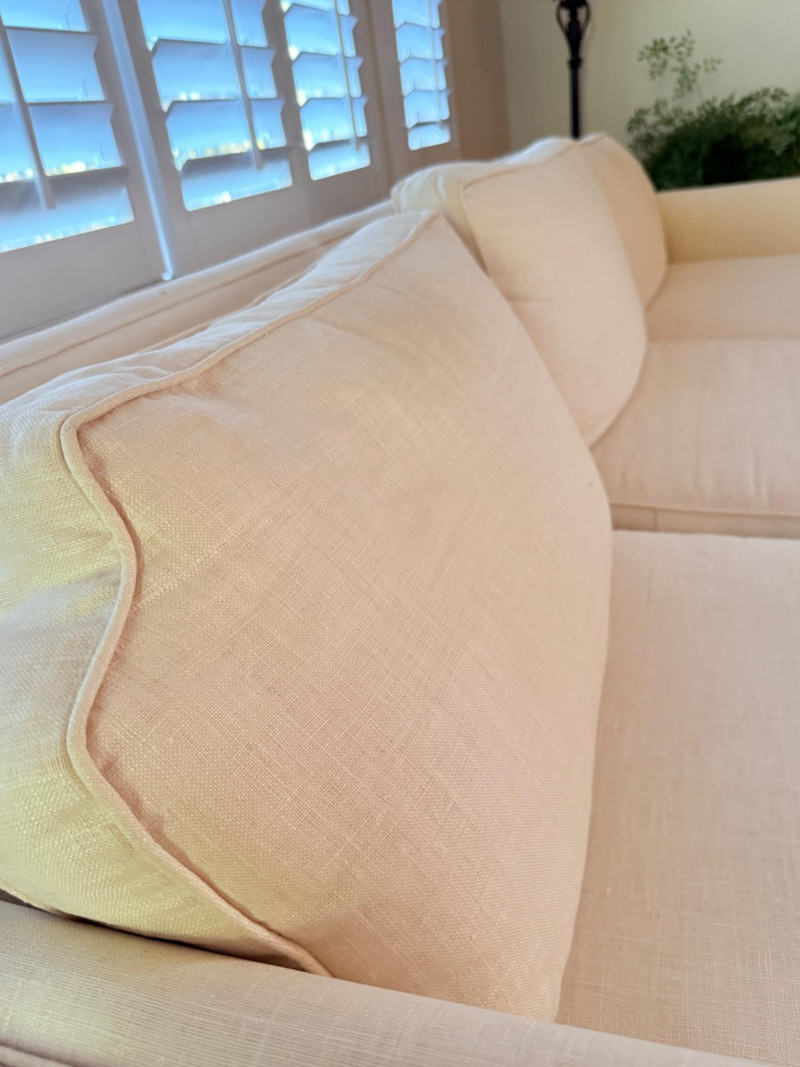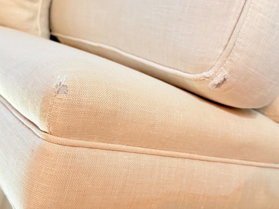 Traditional English-Arm Wooden Frame Sofa Bidding on this lot is an agreement that: (1) You will have 2 capable, able bodied persons to lift and load at a minimum. (2) You will bring a hand truck and/or any other tools needed to remove this item. If these steps are not followed your next item will be forfeit and no refund given.