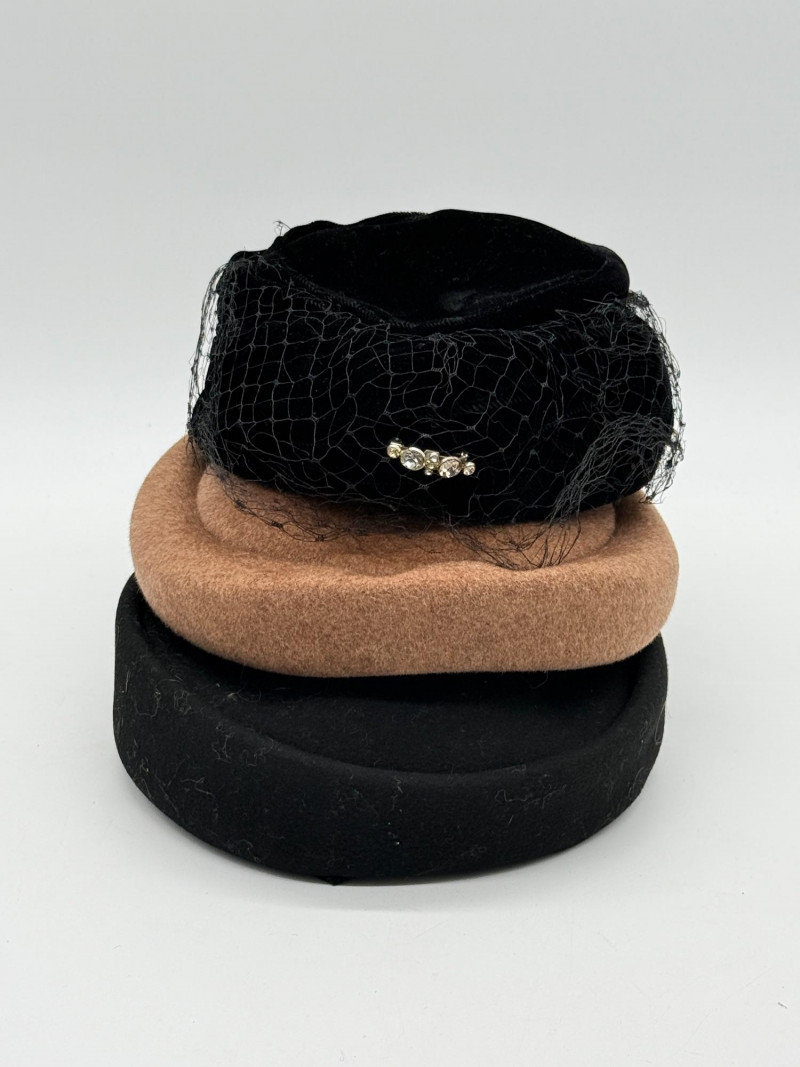 Lot # 95 - Vintage Ladies' Velvet Pillbox Hat, Wool Hat & Velvet Beret Hat