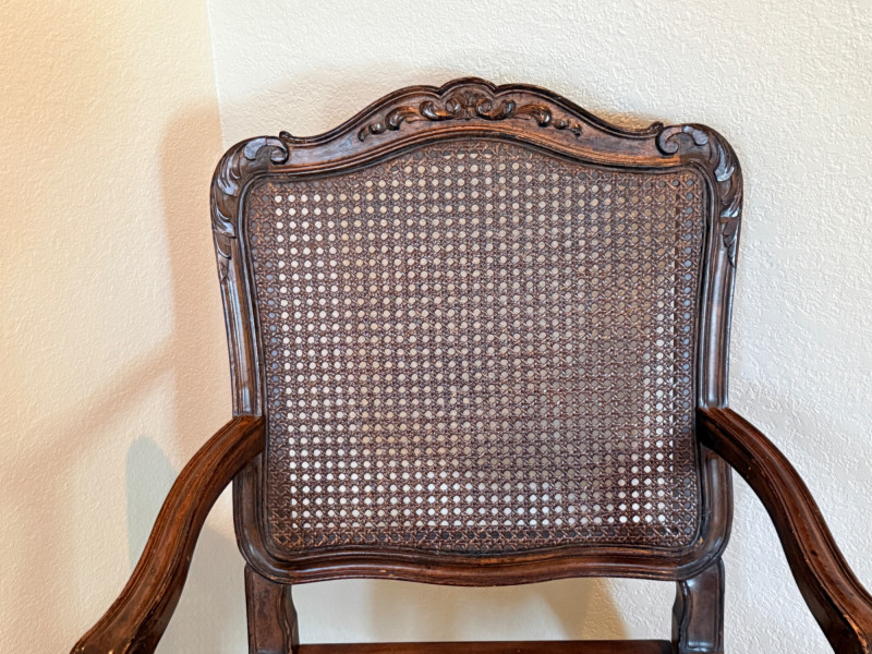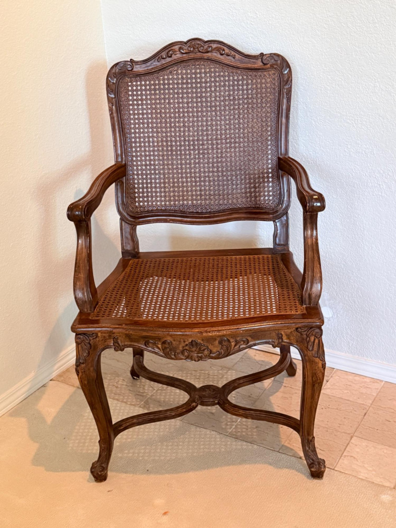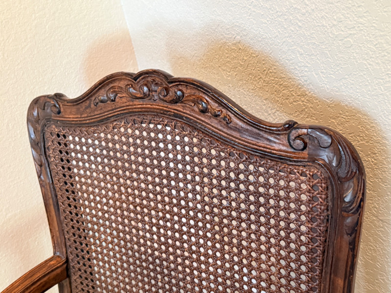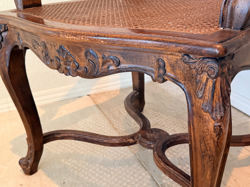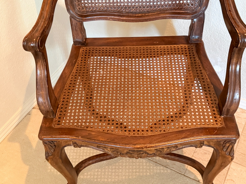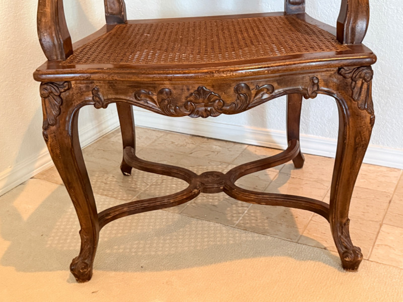 Vintage Louis XV Style Carved Armchair w/ Cane Seat and Back