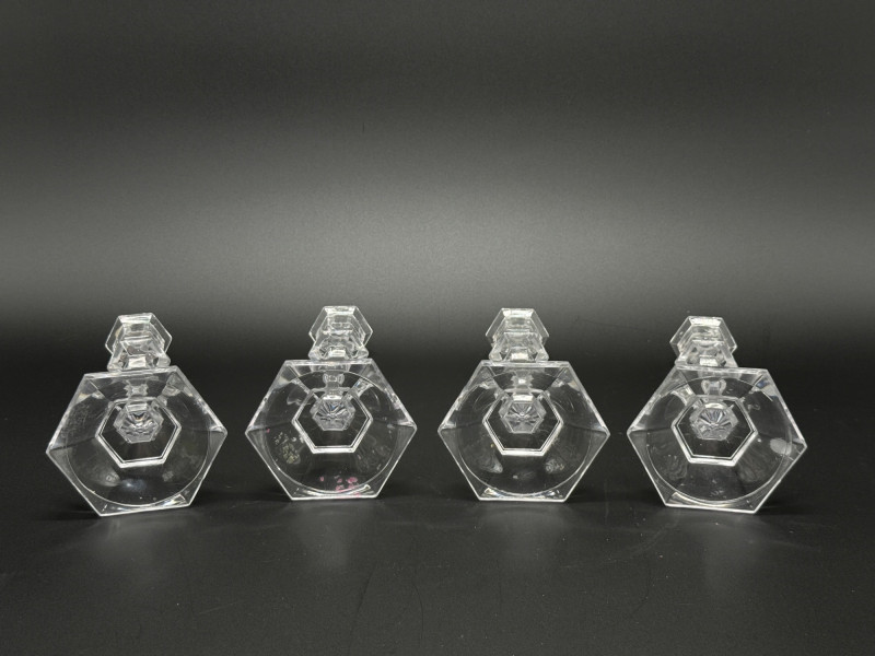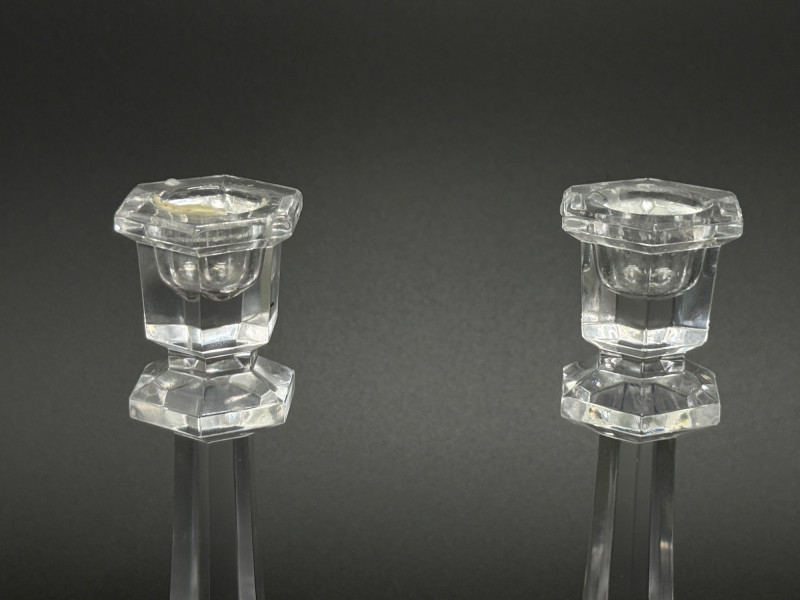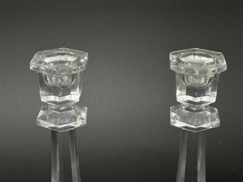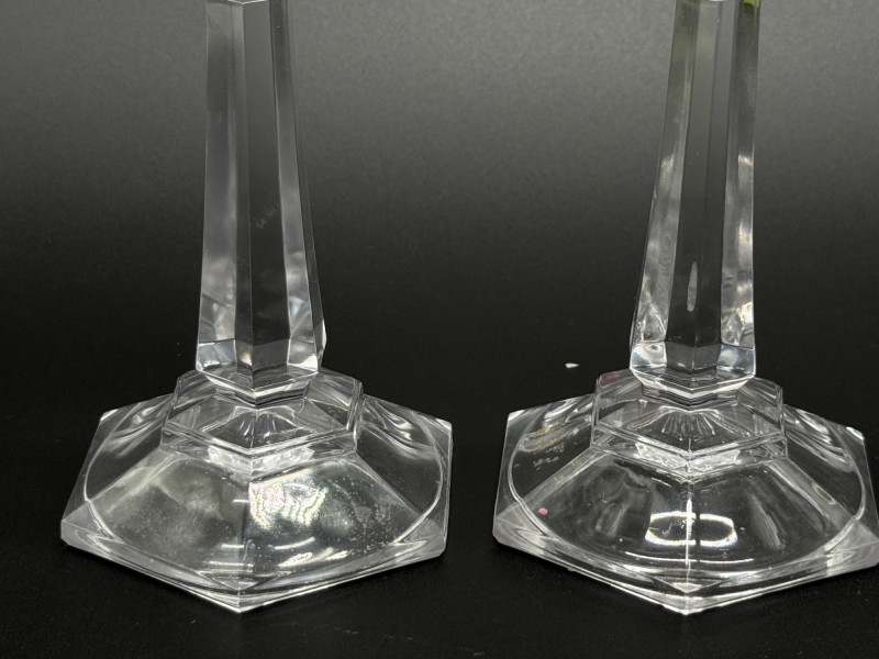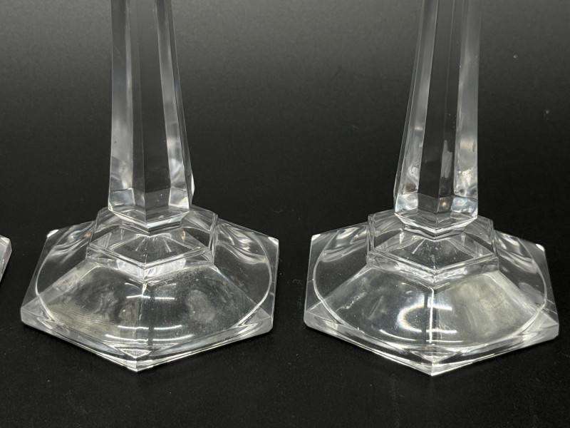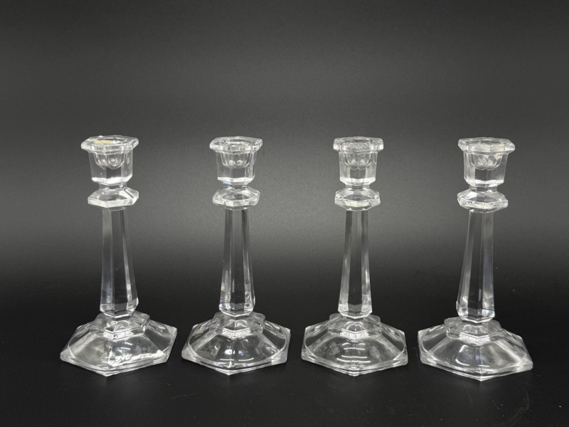 Lot # 51 - Set of 4 Vintage Faceted Crystal Glass 7" Candlestick--Octagonal Base