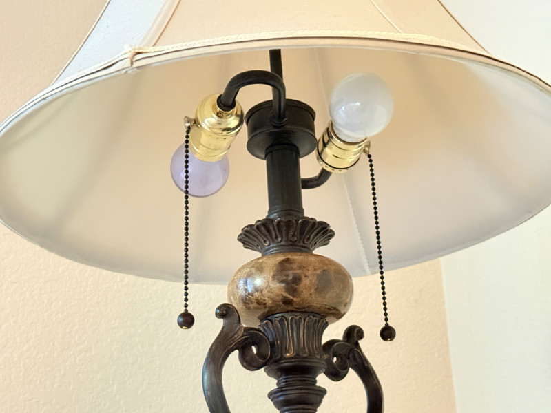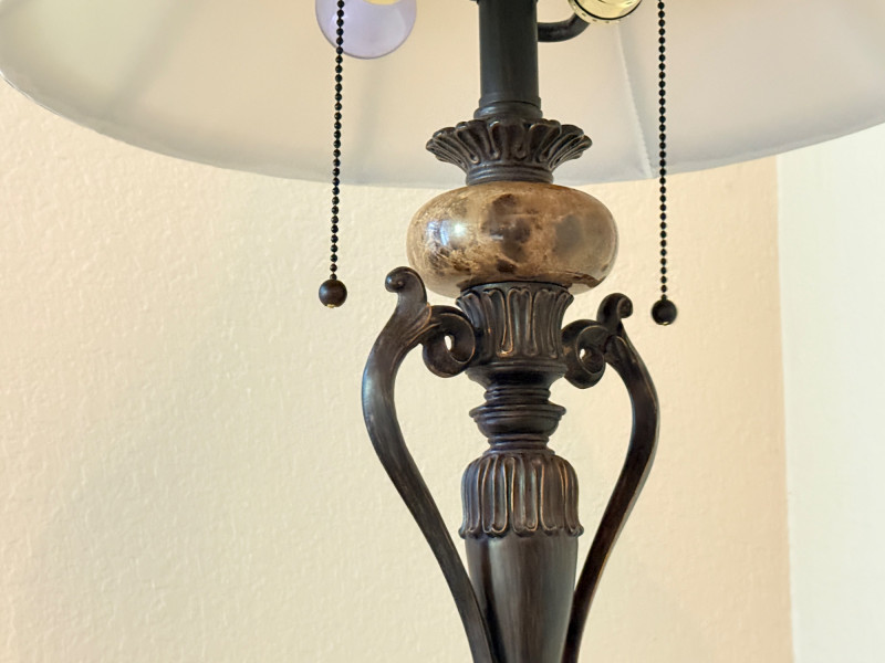Traditional Bronze Finish Floor Lamp Disclaimer: We do not test the metals of the items listed for auction. By placing a bid, you acknowledge and agree that you are purchasing the item "as is" and without any guarantee of metal quality. We do not offer refunds based on metal content or purity.