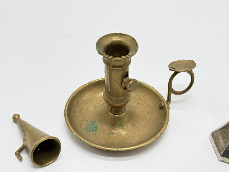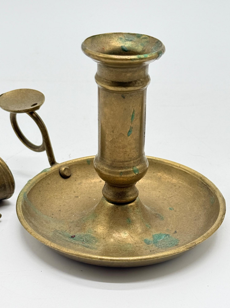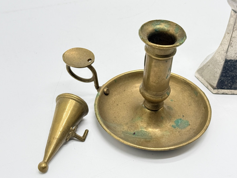 Lot # 105 - Vintage Brass & Silver-Plated Candle Holders, Bud Vase & Pewter Cup