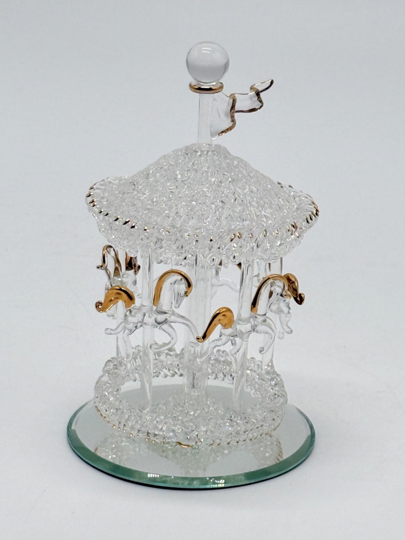 Glass Baron Spun Carousel Figurine w/ Gold Accents