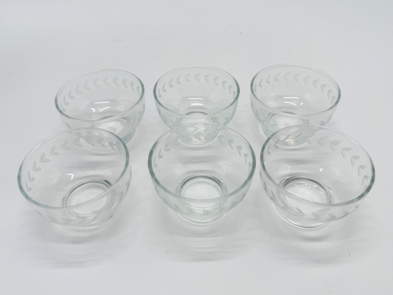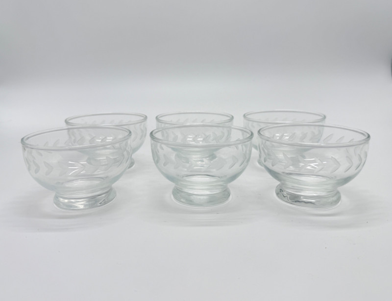 Lot # 80 - Anchor Hocking Laurel Clear Footed Etched Dessert Bowls