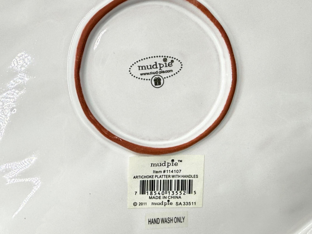 Lot # 120 - Mud Pie Artichoke Serving Platter w/ Metal Handles