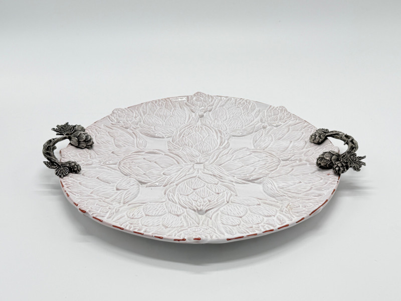 Mud Pie Artichoke Serving Platter w/ Metal Handles