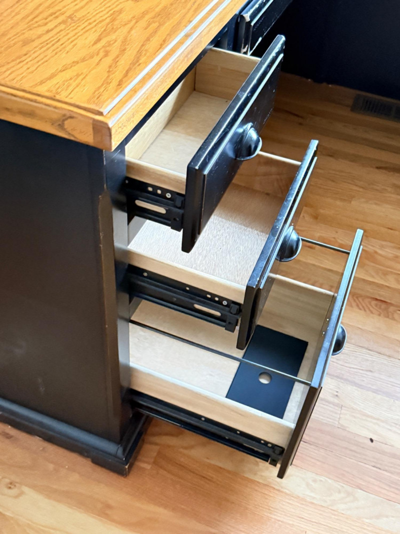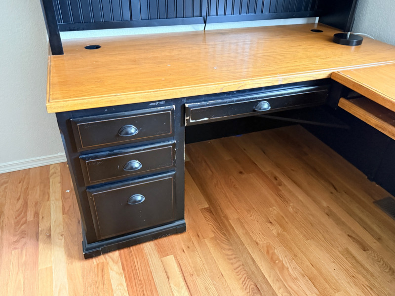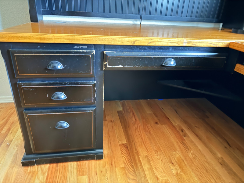 3 Piece Wooden Home Office Desk, File Cabinet & Bookshelf Bidding on this lot is an agreement that: (1) You will have 2 capable, able bodied persons to lift and load at a minimum. (2) You will bring a hand truck and/or any other tools needed to remove this item. If these steps are not followed your next item will be forfeit and no refund given.